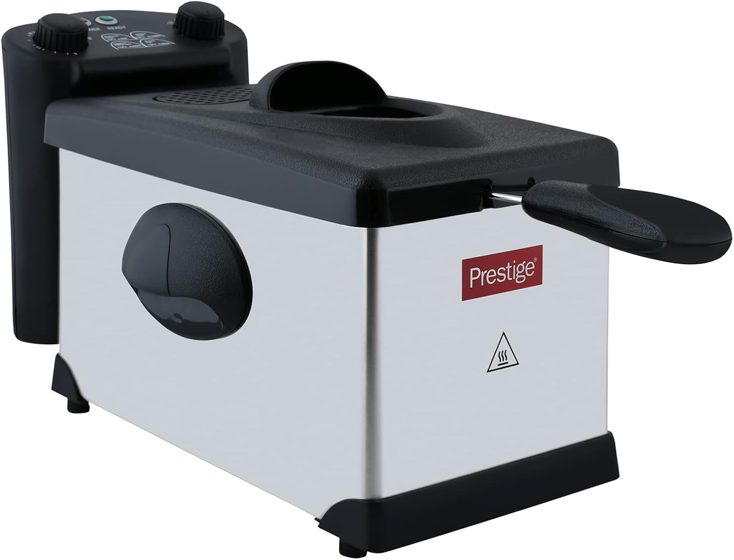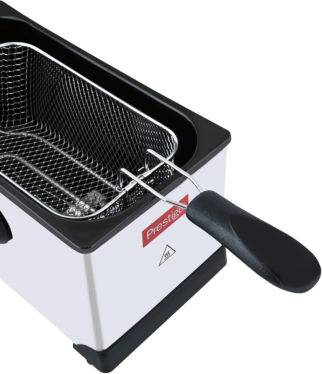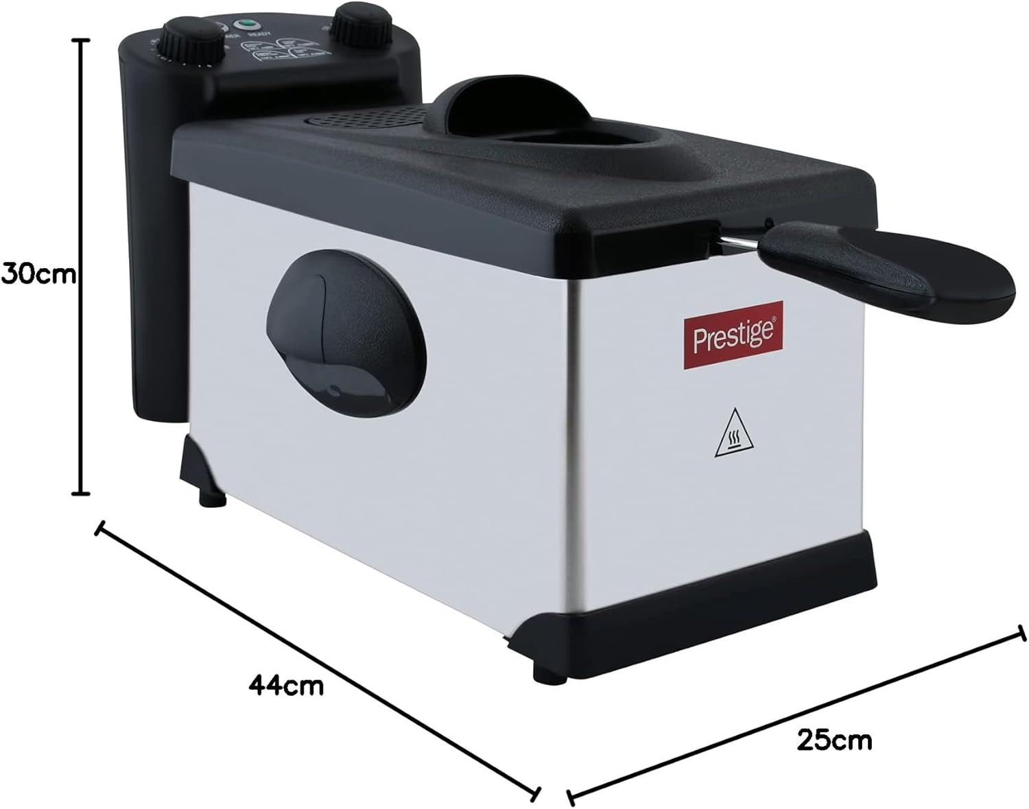 بريستيج مقلاة عميقة من الستانلس ستيل بـ 8 اعدادات لدرجة الحرارة 150 230 درجة مئوية 3 لتر، هيكل من الستانلس ستيل، سلة 1 كجم، PR54916، فضي، كفالة المصنع لمدة عام واحد على الاقل