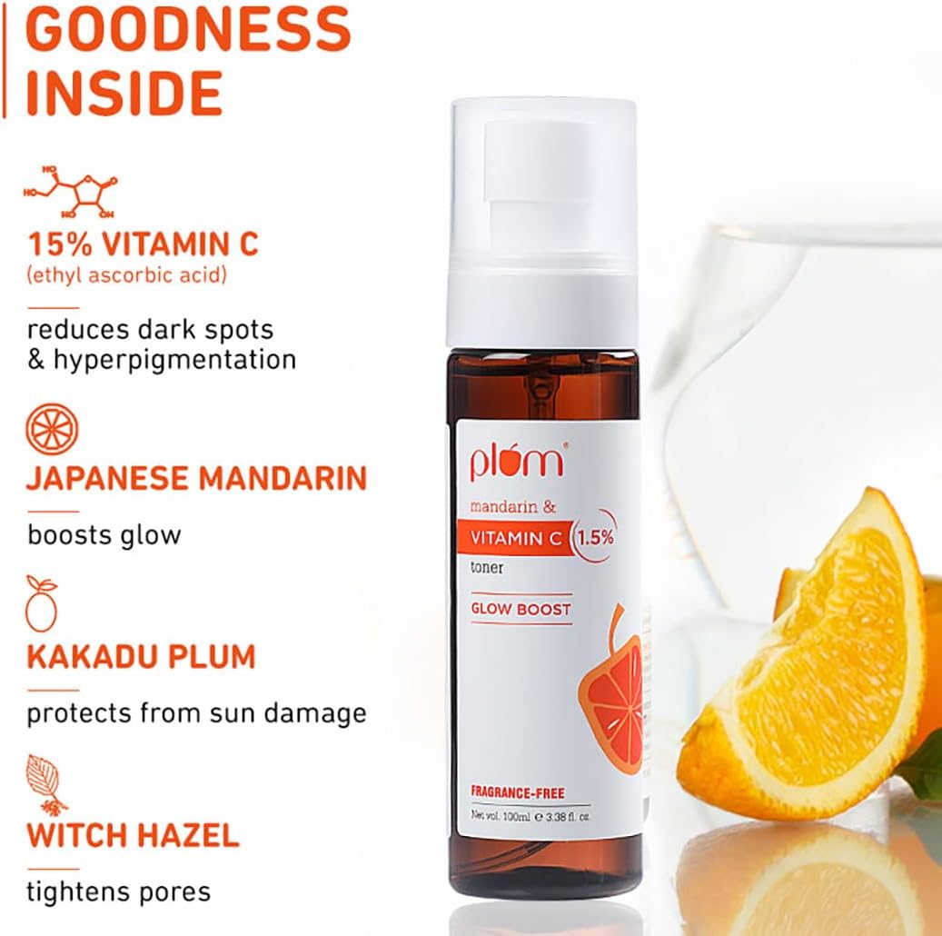 بلام تونر للوجه بفيتامين سي للبشرة المتوهجة وتقليل التصبغ | للنساء والرجال | مع اليوسفي والكاكادو | خالي من الكحول | للبشرة الدهنية والمعرضة لحب الشباب والجافة والعادية والحساسة | 100 مل