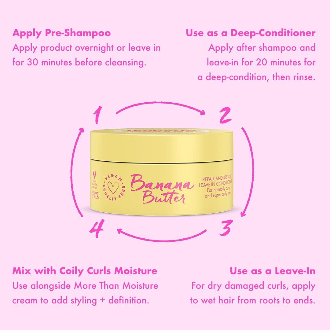 تركيبة طبيعية بنسبة 97% – تم تركيبه من مكونات طبيعية لدعم تجعيداتك؛ يتميز بالموز وزبدة الشيا وزيت جوز الهند وزبدة الكوبواكو وزيت الجوز البرازيلي؛ خالٍ من السيليكون والبارابين