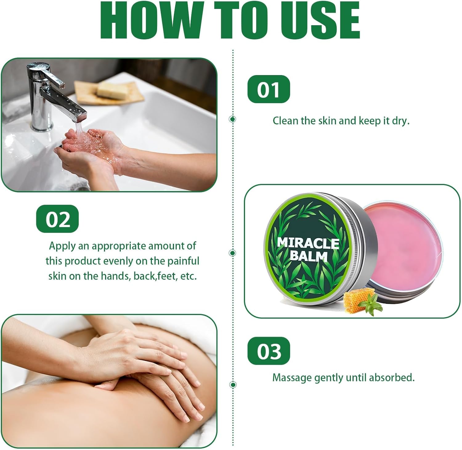 【تركيبة لطيفة وطبيعية】: يحتوي بلسم ميراكل هذا على مجموعة متنوعة من المستخلصات النباتية التي يمكن أن تجلب شعورًا مهدئًا ومنعشًا للبشرة. مكونات طبيعية كريم الجسم تساعد المكونات الطبيعية على استرخاء العضلات المتعبة وتوفير تجربة راحة تدوم طويلاً.