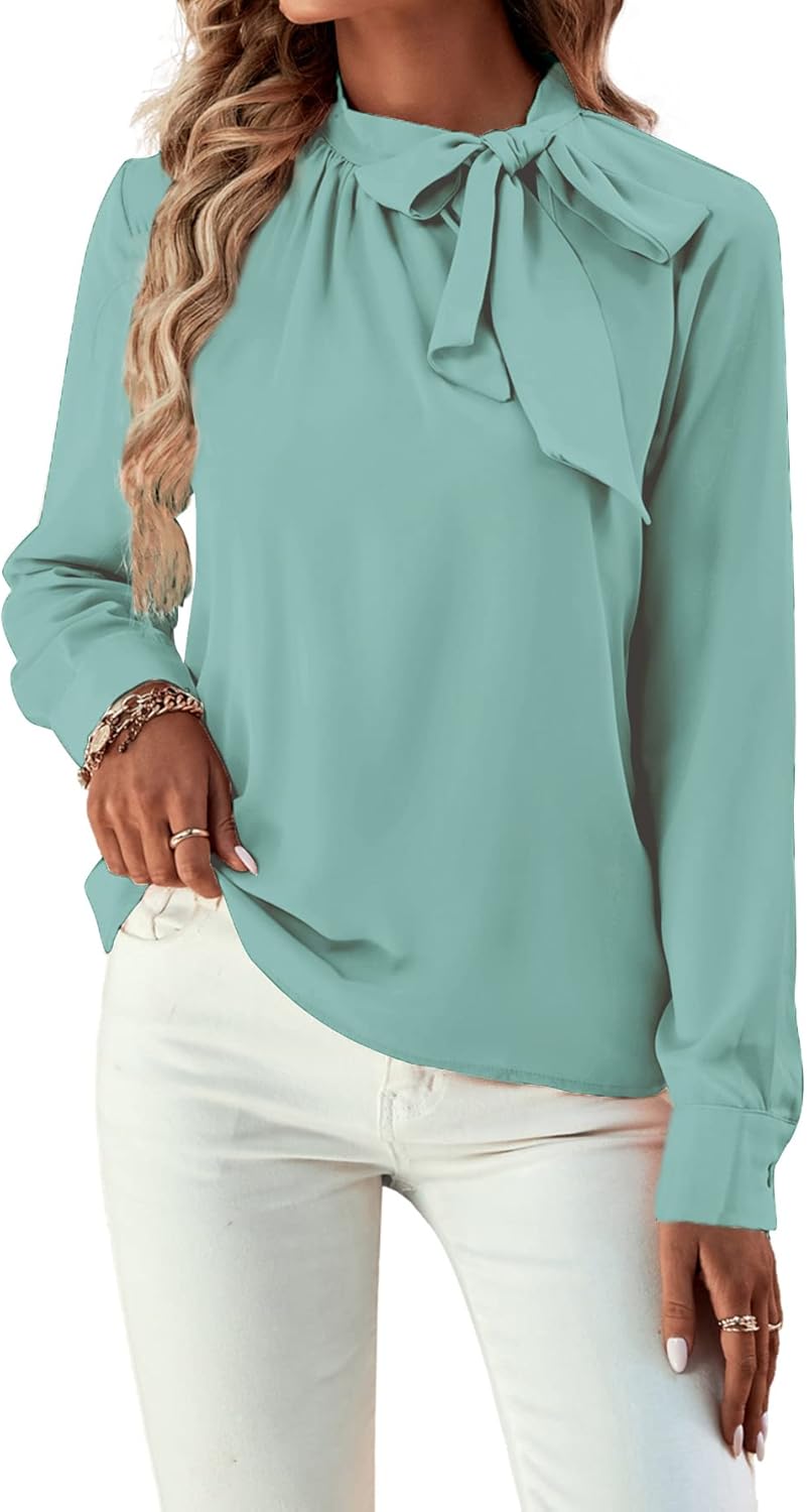 شراء بلوزة انيقة للنساء برقبة مرتفعة واكمام طويلة مكشكشة بعقدة ربطة عنق اون لاين من امازون او نون وحراج بلوزة انيقة للنساء برقبة مرتفعة واكمام طويلة مكشكشة بعقدة ربطة عنق