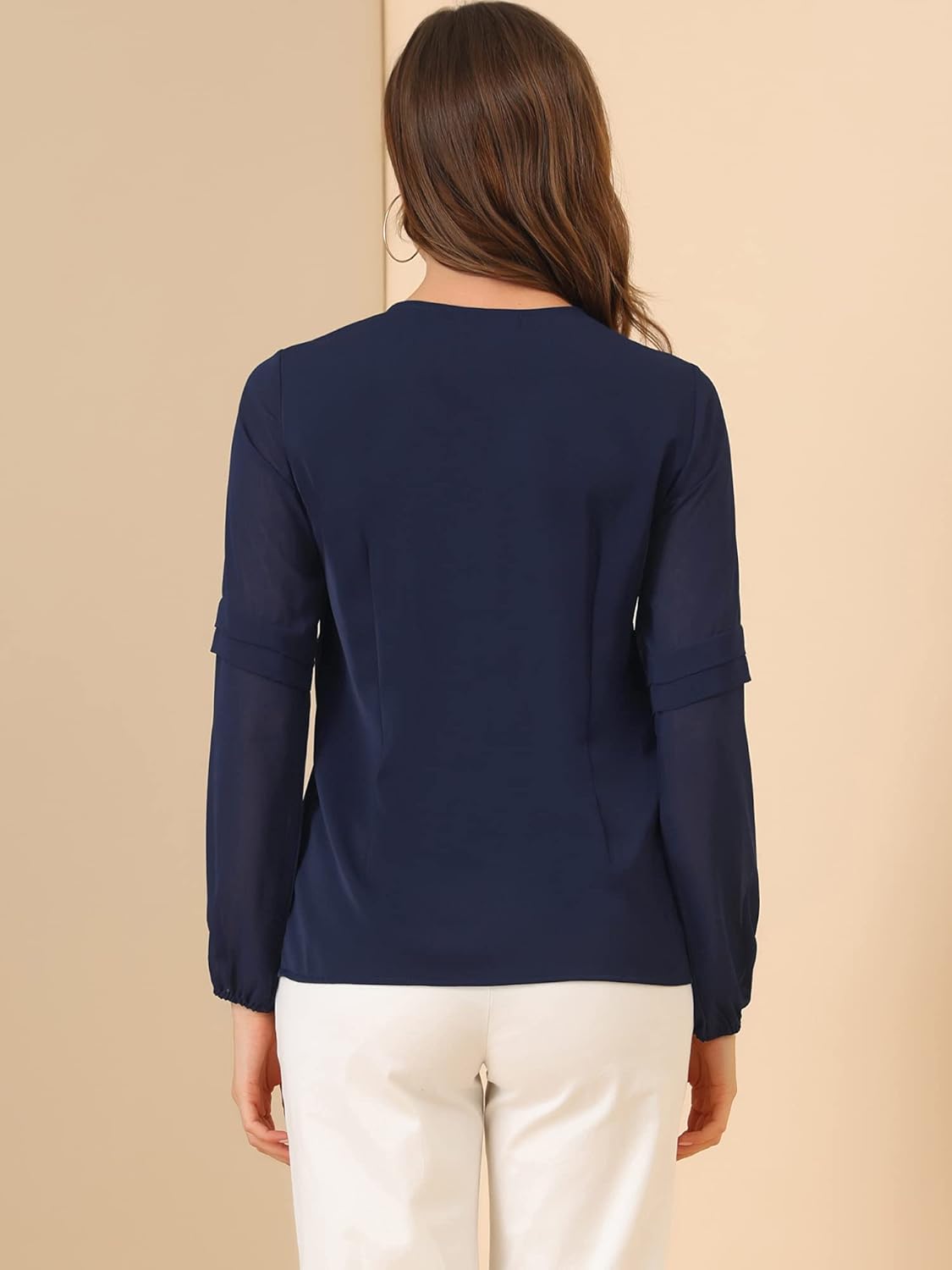 بلوزة عمل نسائية من الشيفون قميص شبه شفاف بفتحة عنق بلوزة انيقة