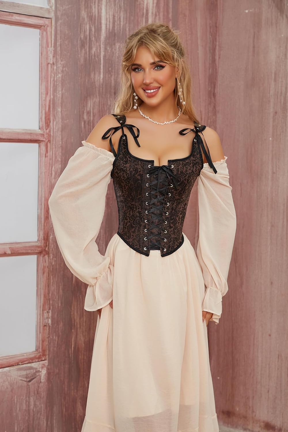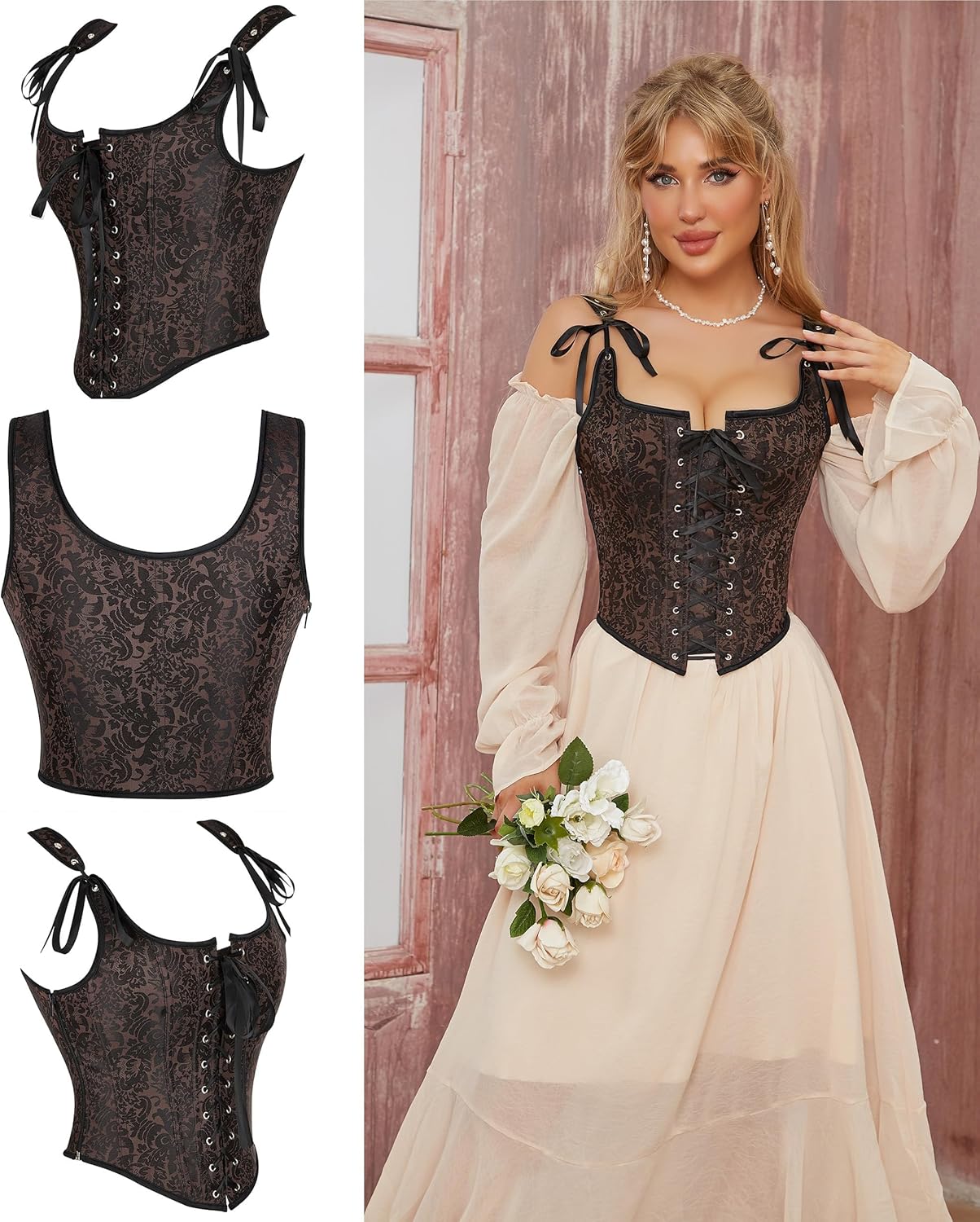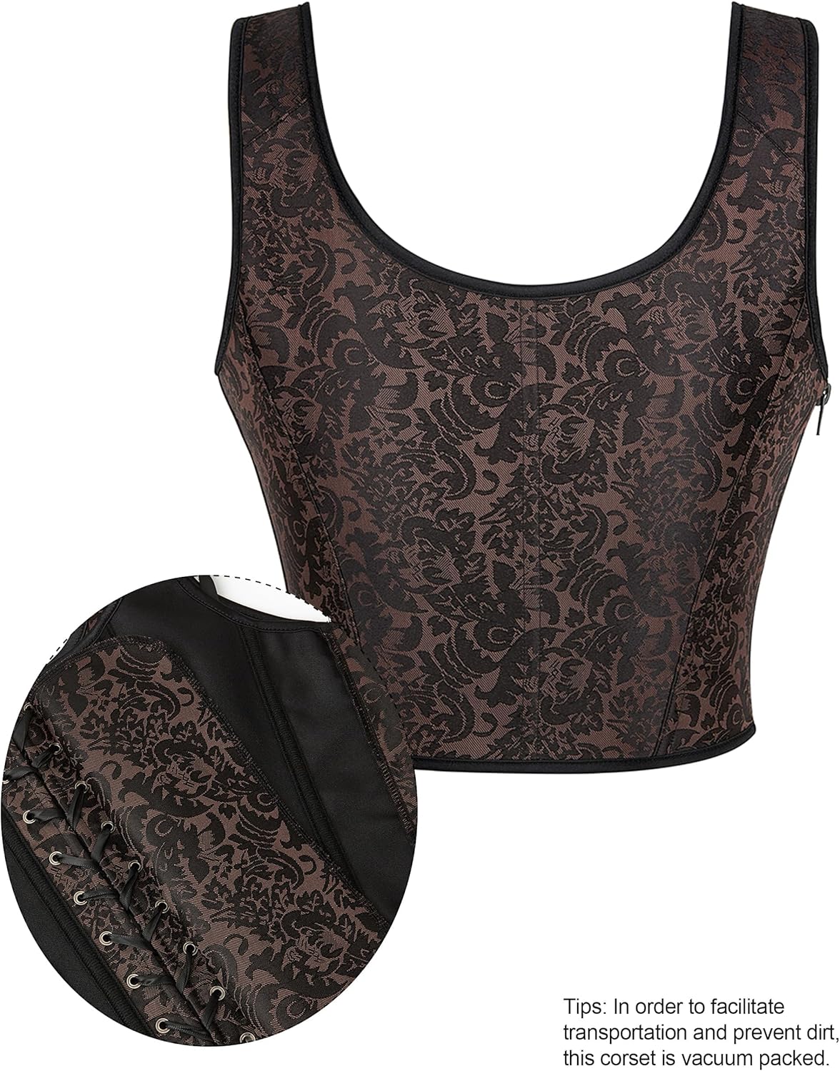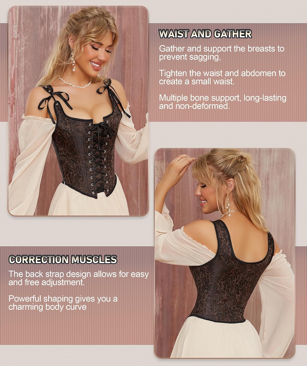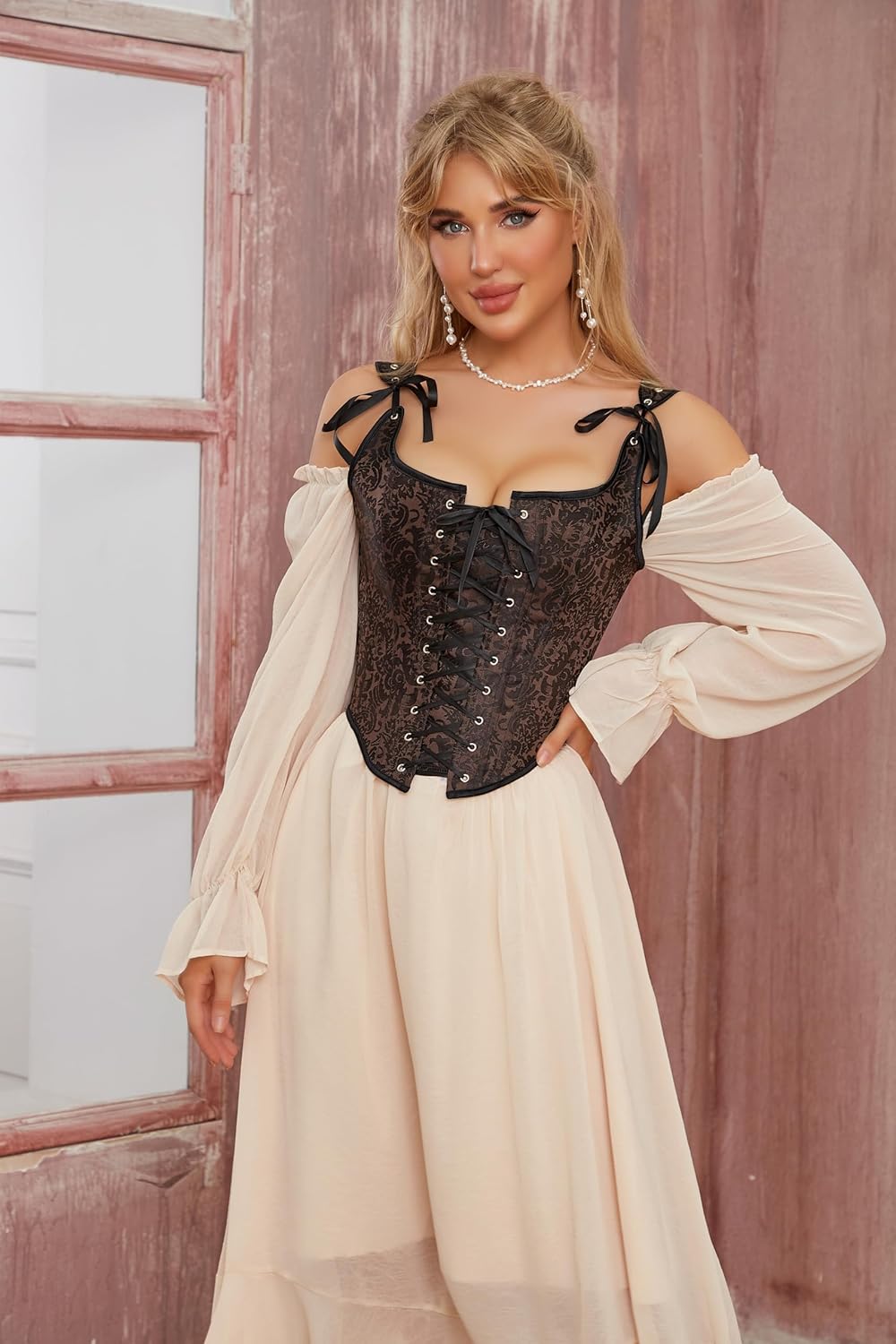 بلوزة كورسيه بتصميم زهور للنساء من عصر النهضة للخروج، لون بني فينتاج بوش اب فوق الصدر، مشد للجسم برباط
