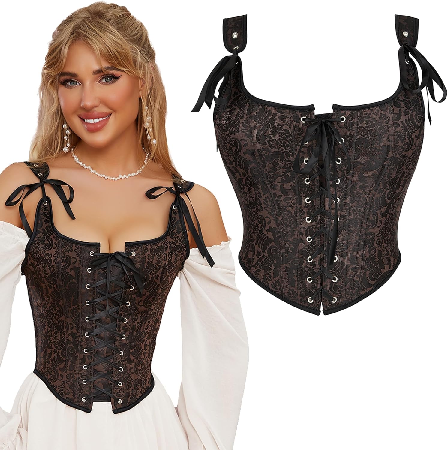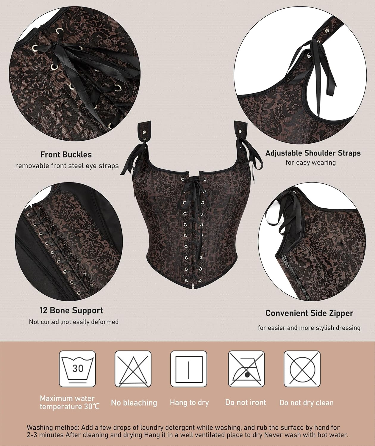 شراء بلوزة كورسيه بتصميم زهور للنساء من عصر النهضة للخروج، لون بني فينتاج بوش اب فوق الصدر، مشد للجسم برباط اون لاين من امازون او نون وحراج بلوزة كورسيه بتصميم زهور للنساء من عصر النهضة للخروج، لون بني فينتاج بوش اب فوق الصدر، مشد للجسم برباط