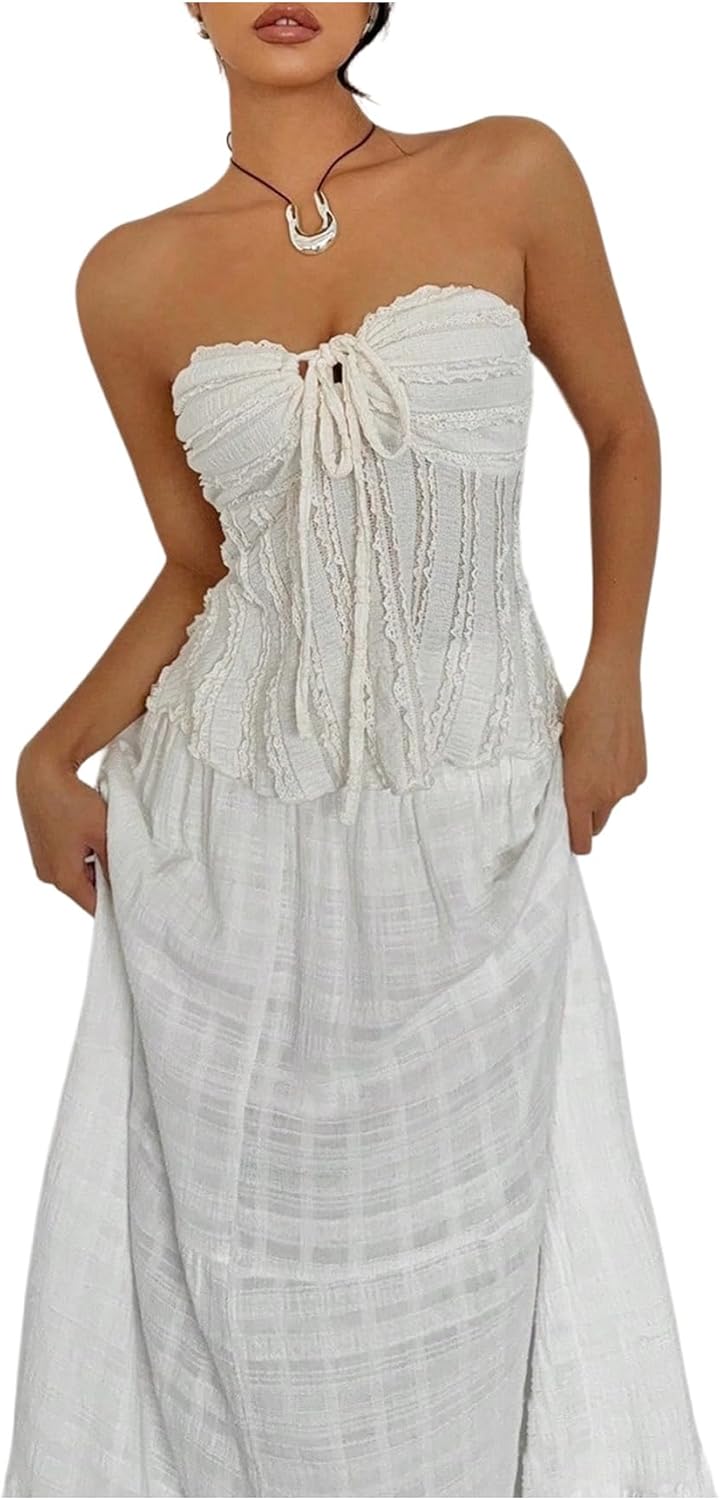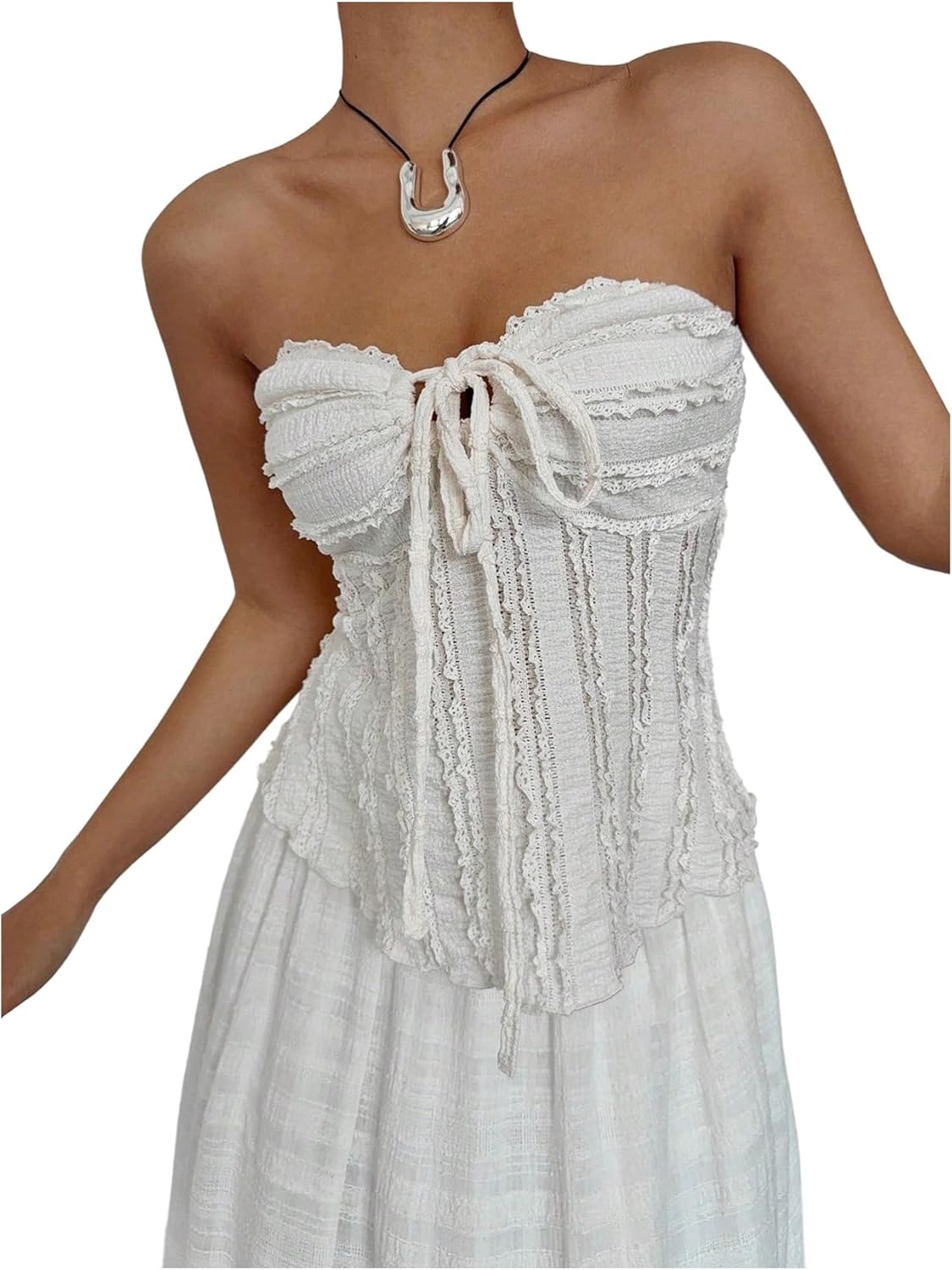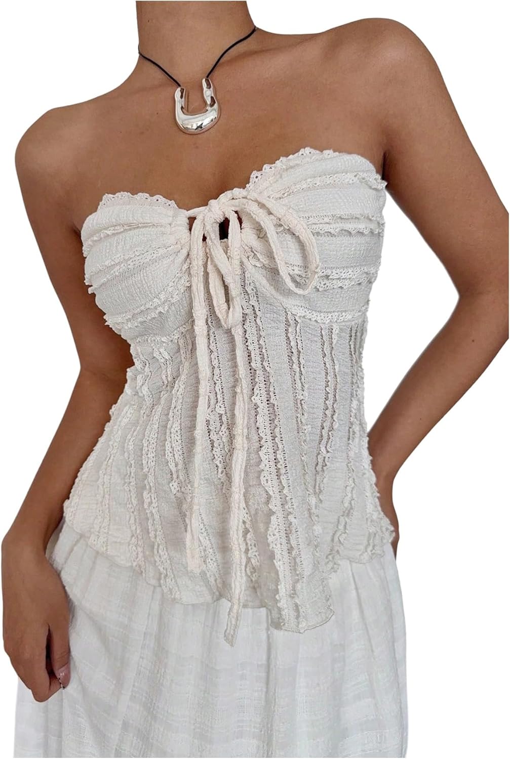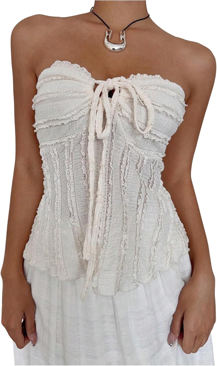 بلوزة نسائية من جورجليتر بتصميم بوهو صيفي بدون حمالات ورباط امامي