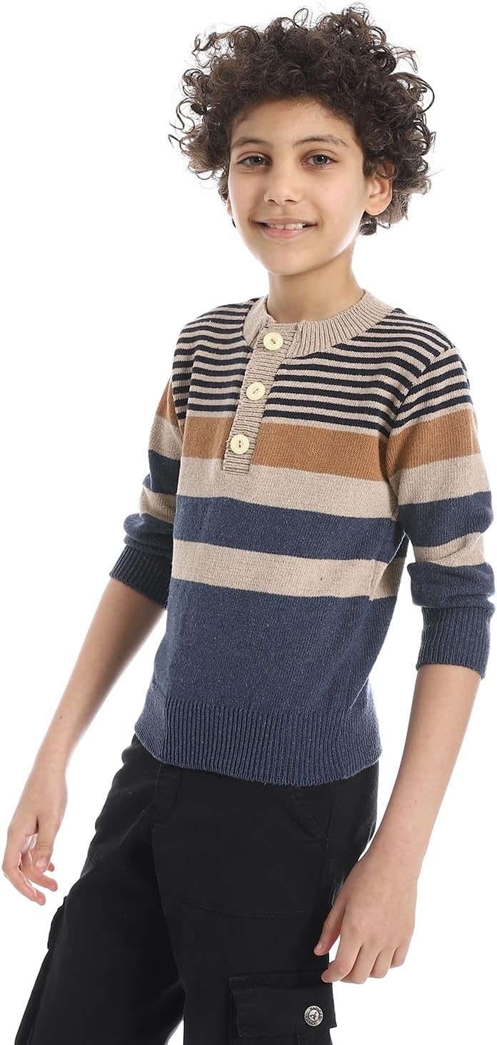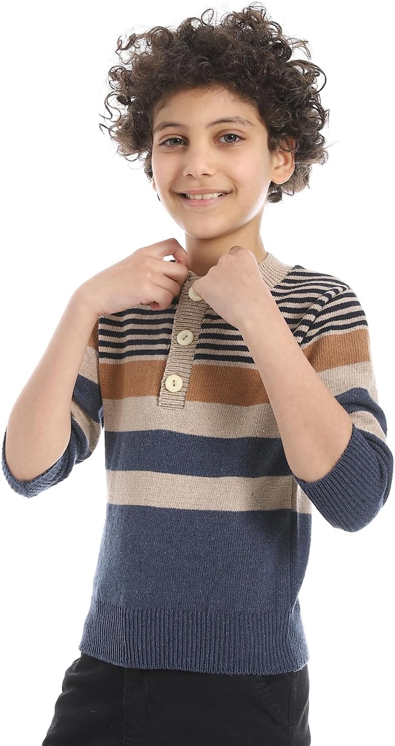 بلوفر مخطط برقبة دائرية ضيقة للاولاد