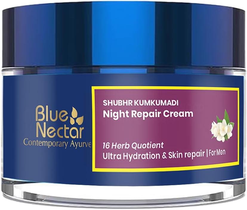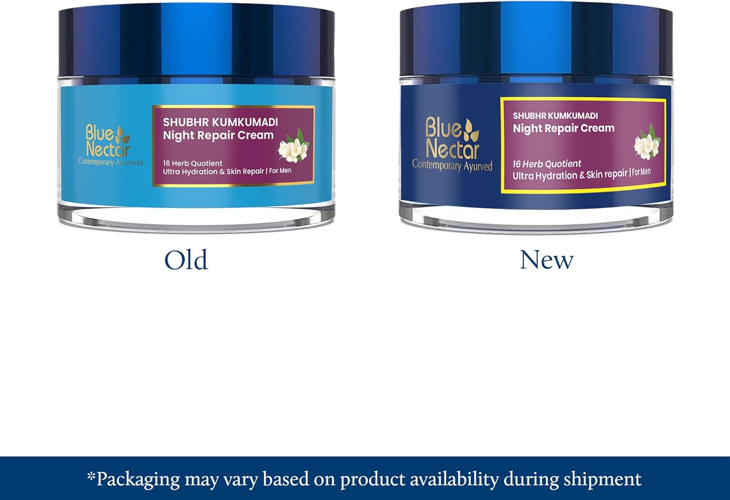 بلو نكتار كريم ليلي للرجال من كومكومادي للبشرة المتوهجة | كريم ليلي مضاد للشيخوخة لتفتيح البشرة الدهنية والجافة والمختلطة (50 غرام)
