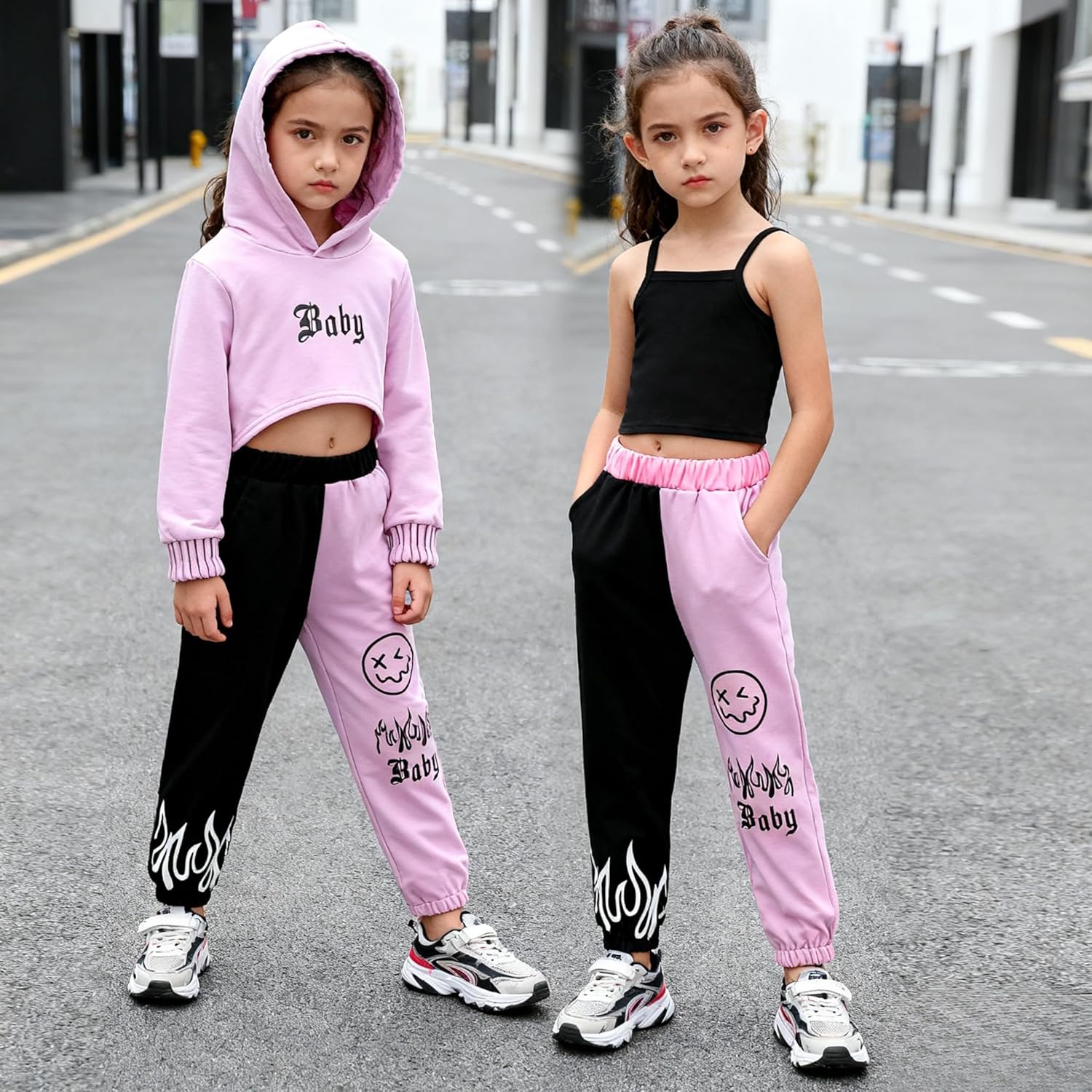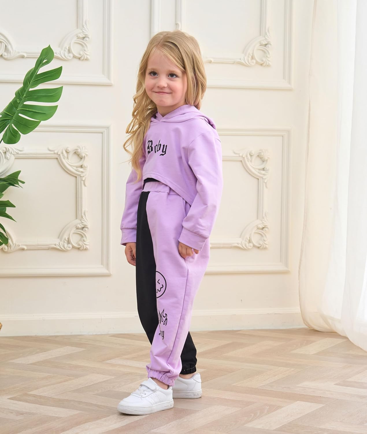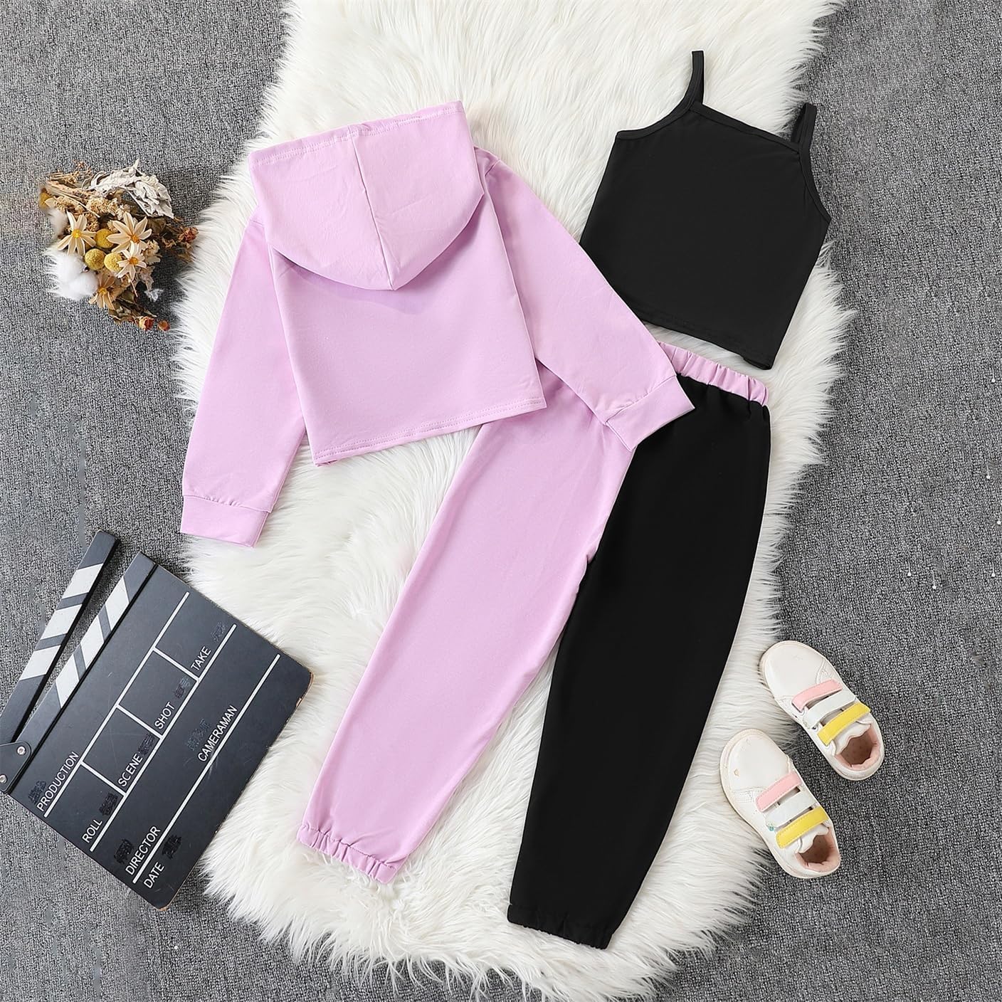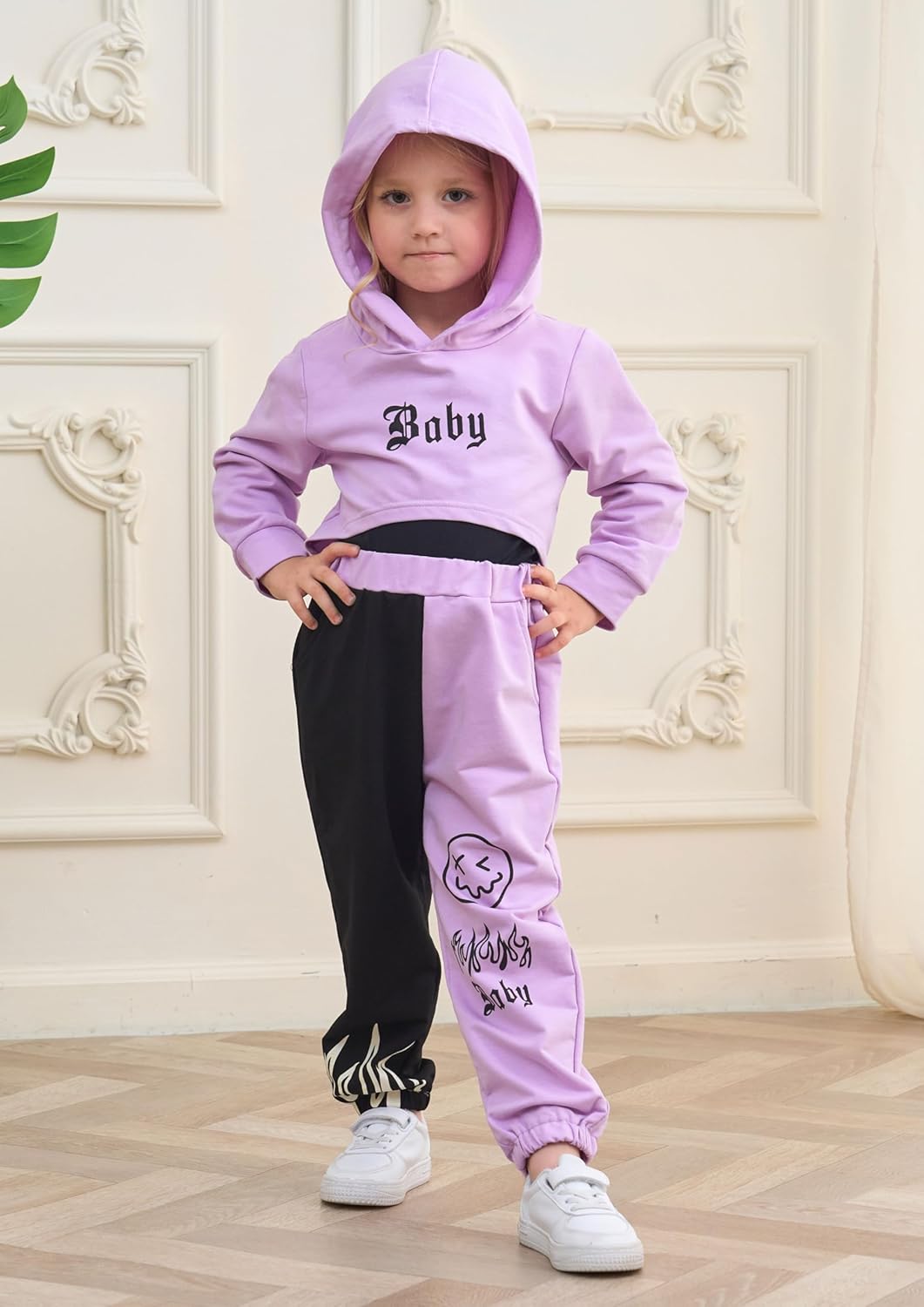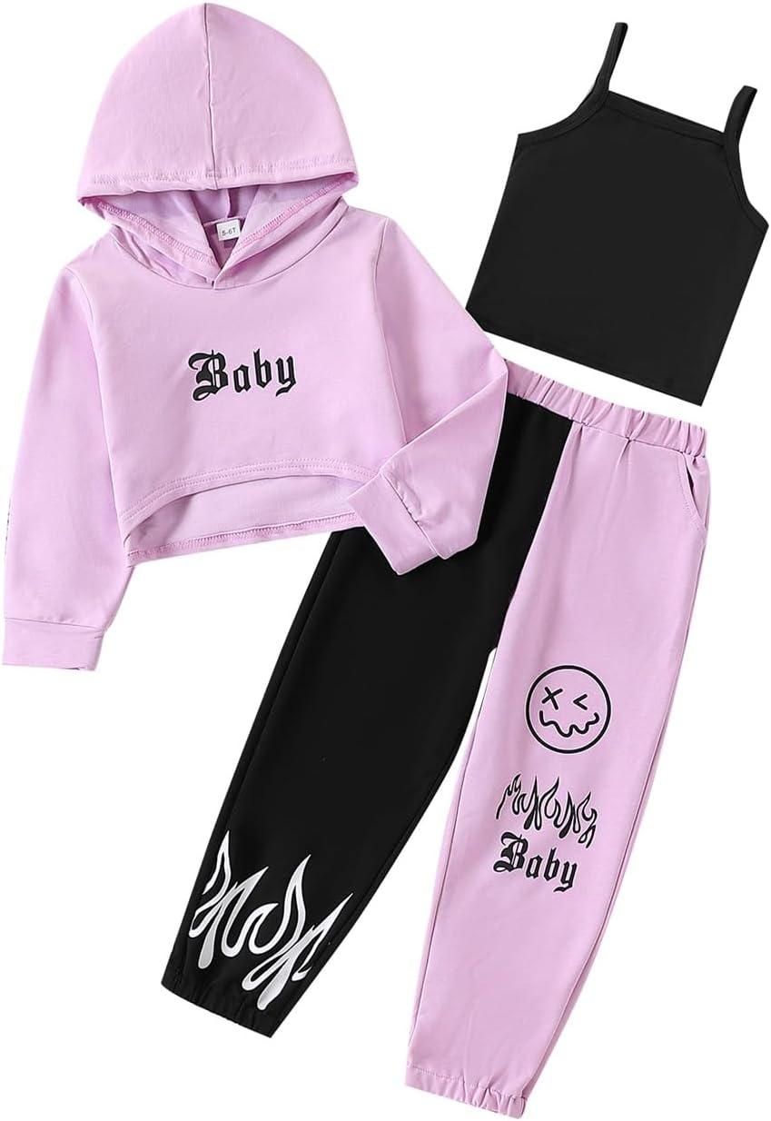 طقم ملابس للفتيات الصغيرات مكون من 3 قطع من ملابس الخريف والشتاء بغطاء للرأس وبنطلون رياضي مطبوع عليه حروف وبنطلون كامي