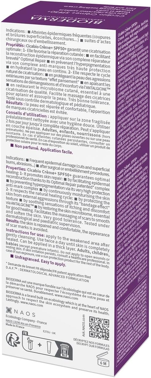 يضمن كريم سيكابيو العلاجي الجديد المهدئ للغاية من بيوديمرا مع عامل حماية من الشمس 50+ وحمض الهيالورونيك إصلاحًا أسرع وأفضل للبشرة. كريم الندبات مع حماية مناسبة من أشعة الشمس لجميع أنواع البشرة المتهيجة والجلد المكسور والحكة لا يترك أي علامات ندبة أو ألم أو فرط تصبغ بعد الإصابة. مناسب لجميع أنواع البشرة ودرجات لونها بفضل ملمس خفيف الوزن سهل الامتصاص. طورت أبحاث بيوديرما تركيبة جديدة، مخصصة للبشرة الضعيفة المعرضة للأشعة فوق البنفسجية: كريم سيكابيو + عامل حماية من الشمس 50+. يحافظ على ميكروبيوم البشرة ويعيده للمساعدة في ضمان الشفاء الأمثل، مع منع علامات فرط التصبغ. يعيد تنوع الميكروبيوم ويقلل من الإحساس بالحرق: يقلل من الاحمرار