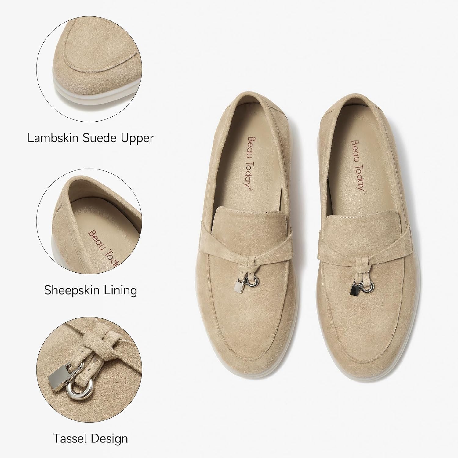 بيو توداي حذاء لوفر مسطح من الشمواه للنساء، حذاء بيني بدون كعب سهل الارتداء، حذاء جلدي مريح للقيادة للنساء، حذاء كاجوال للعمل والمكتب