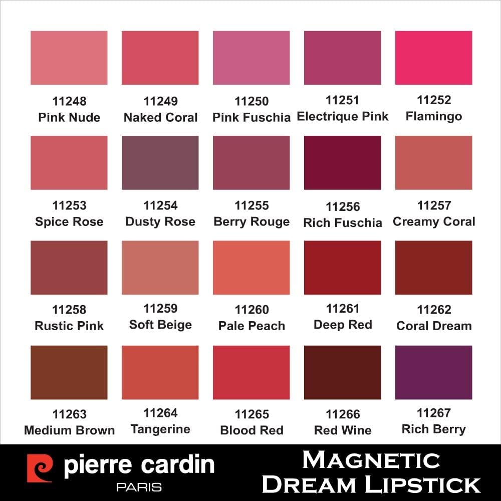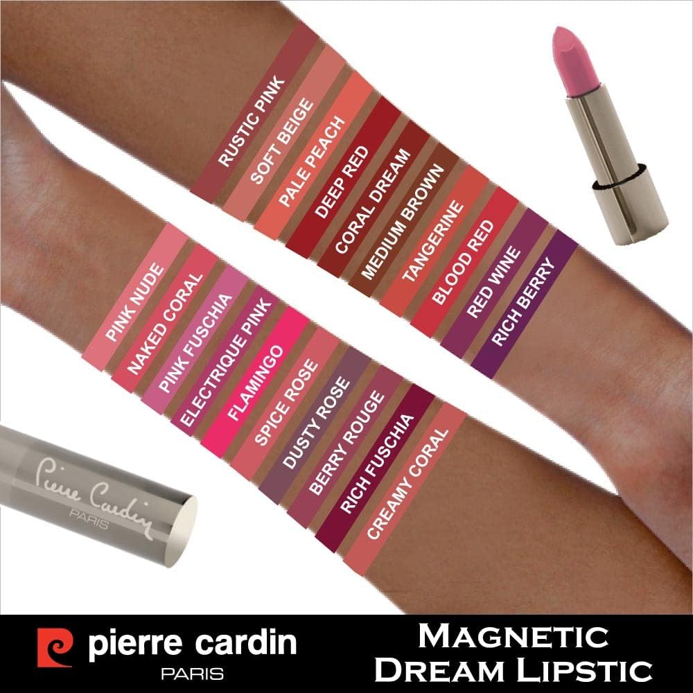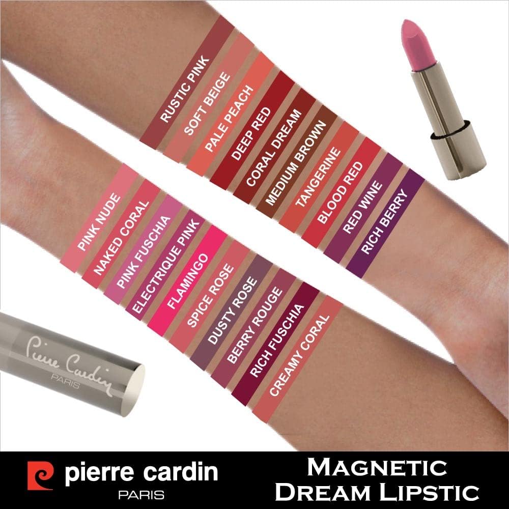بيير كاردان تم تصميم سلسلة أحمر الشفاه ماجنيتك دريم لتجعلك تشعرين بالتميز، بدءًا من عبوته إلى درجات الألوان المذهلة. الألوان الكريمية والصبغية للغاية باللون البيج النيود والأحمر والفوشيا والمرجاني في السلسلة تمنح الشفاه جاذبية لا تقاوم ومظهرًا مريحًا وحريريًا للغاية.