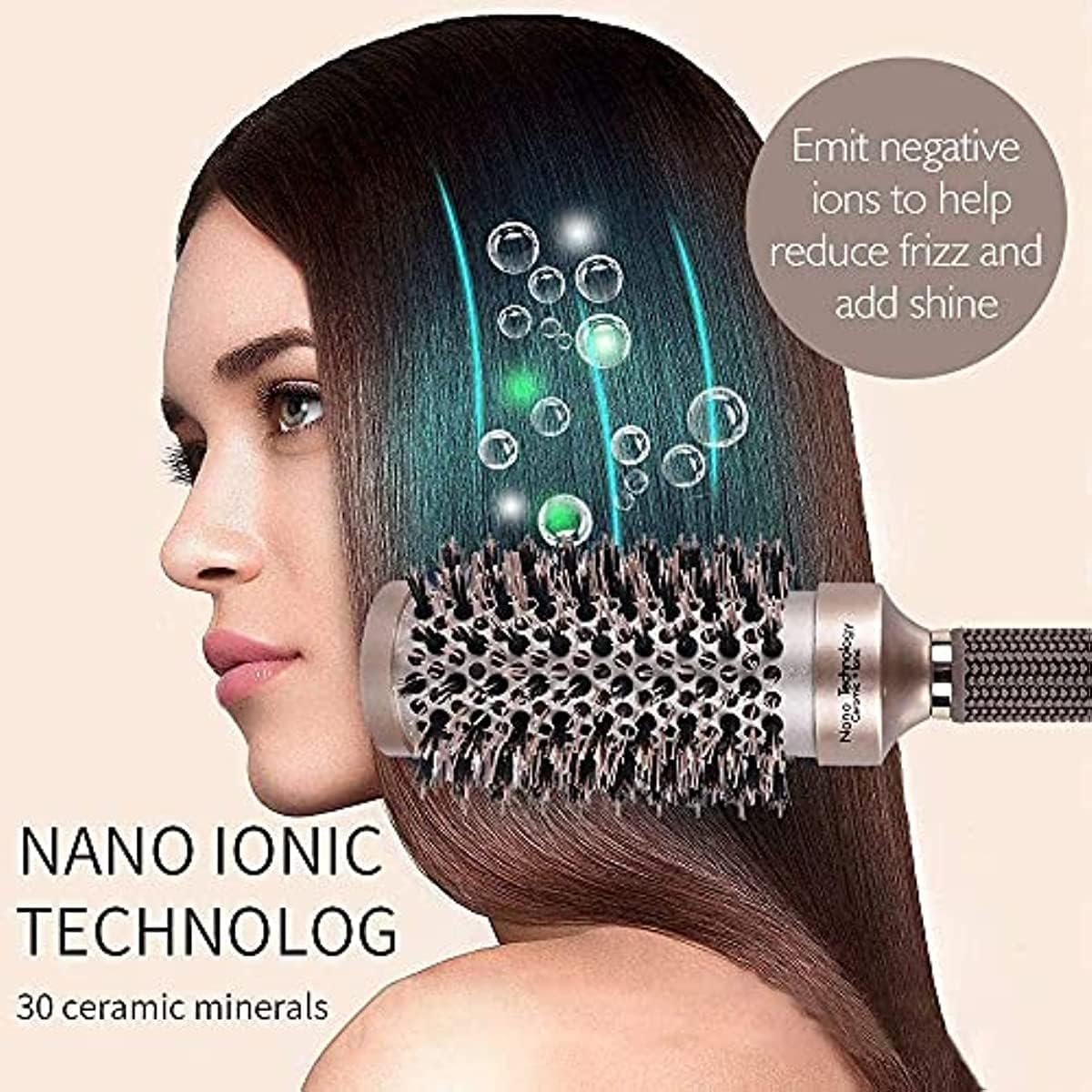 تحسين وترجمة فرشاة نانو الحرارية والسيراميك الايوني المستديرة، فرشاة تصفيف الشعر الاحترافية، مثالية لتجفيف وتصفيف وتجعيد الشعر وزيادة كثافة الشعر (32 ملم)