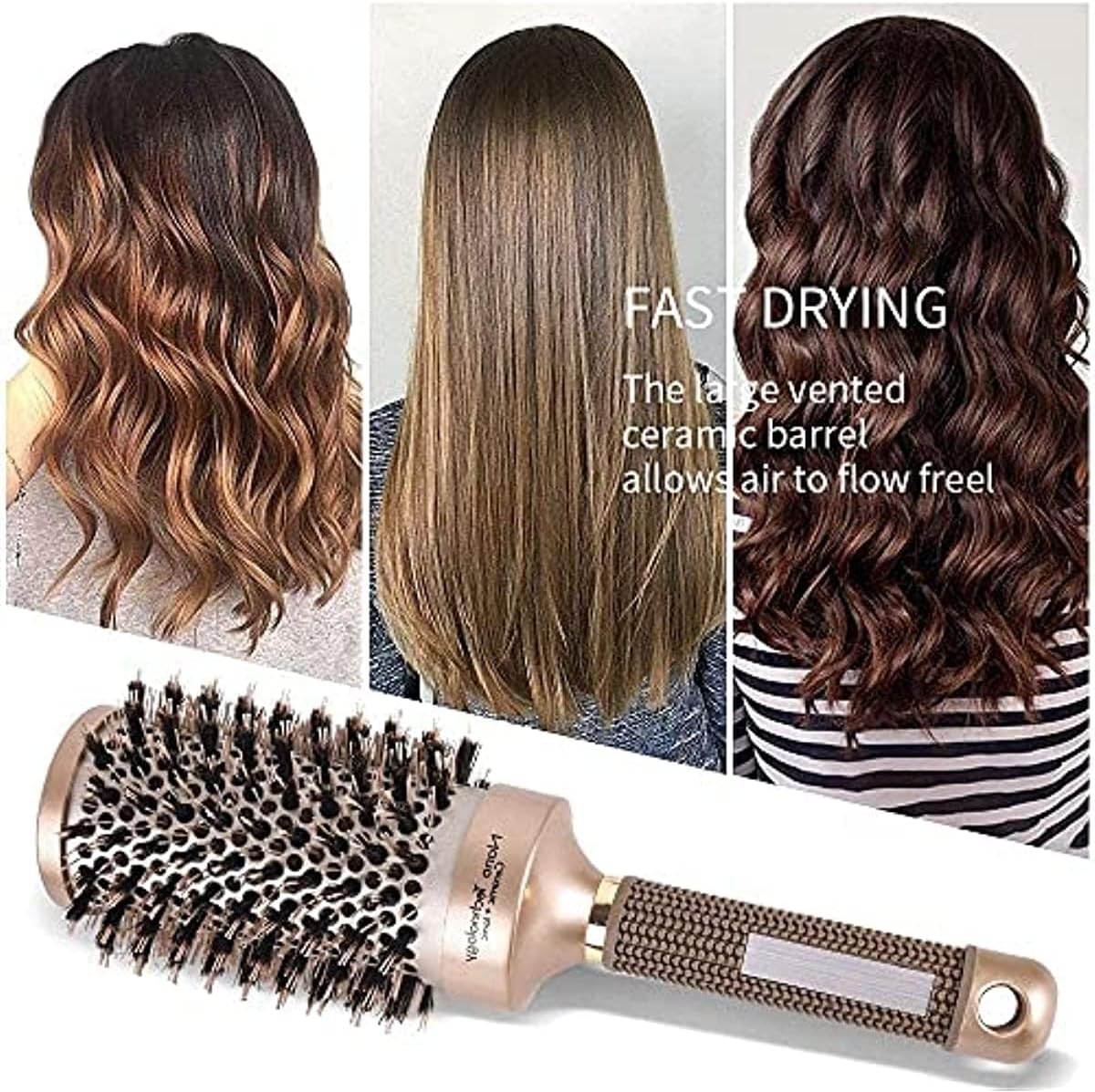 فرشاة احترافية لتجفيف الشعر – فرشاة دائرية لتجفيف الشعر. تصميم الفرشاة المثالي مع فتحات تهوية كبيرة يوفر تدفق هواء ممتاز، مما يقلل من وقت التجفيف لتجفيف الشعر وفرده وتنعيمه.