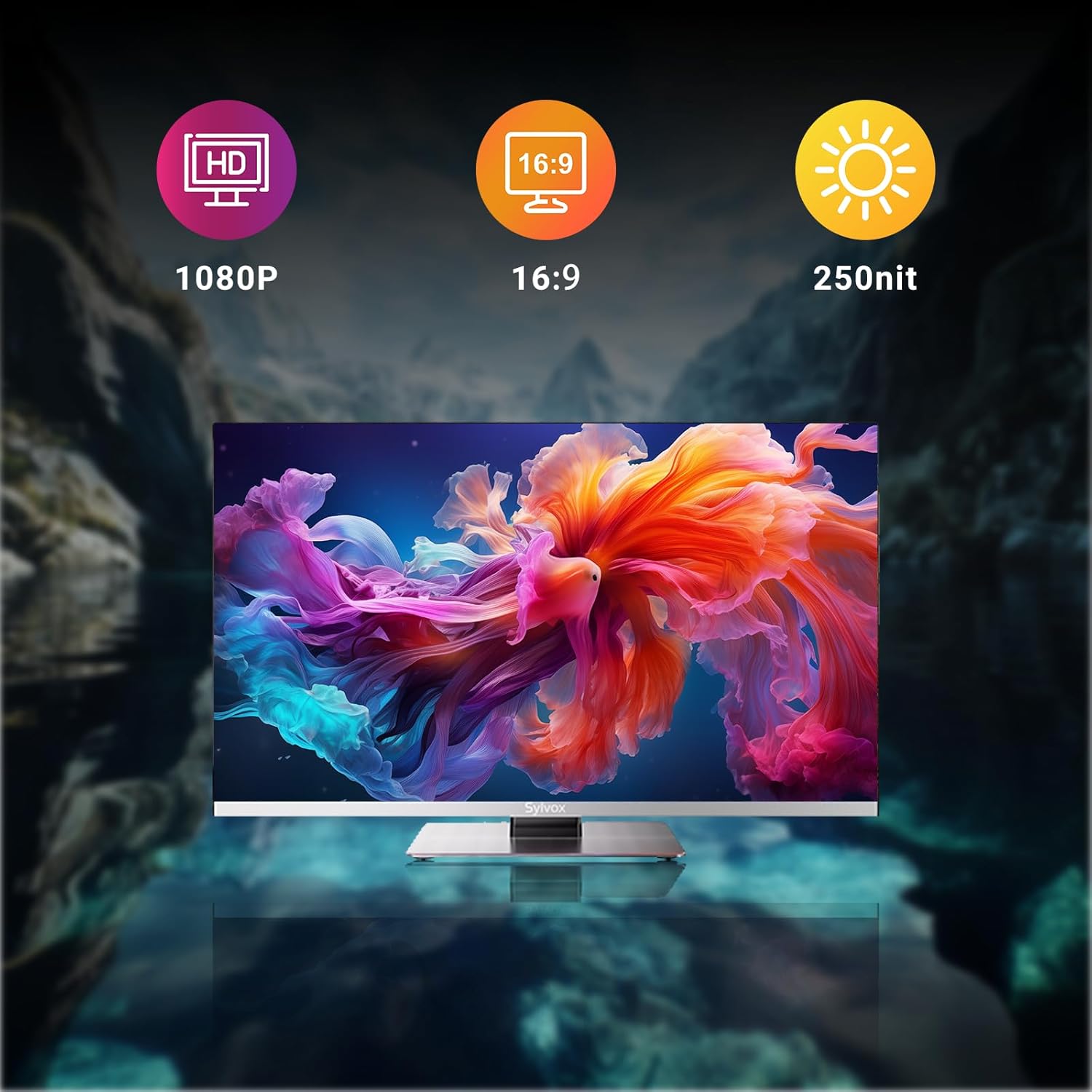 【تلفزيون صغير بدقة 1080P】يوفر تلفزيون سيلفوكس 24 بوصة ار في دقة مذهلة 1080 بكسل مع أكثر من مليار لون دقيق للحصول على جودة صورة طبيعية ودقيقة. استمتع بصور سلسة مع معدل تحديث 60 هرتز وزاوية عرض واسعة 178 درجة، مثالية لمشاهدة برامجك المفضلة أثناء التنقل.