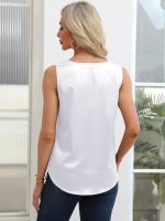 توب كات من الساتان للنساء من ماور كاجوال برقبة على شكل حرف V من الحرير
