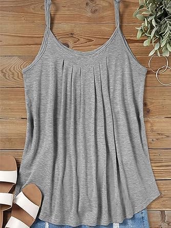 شراء توب نسائي صيفي سادة بكسرات وحمالات رفيعة كاجوال بدون اكمام بتصميم عصري اون لاين من امازون او نون الامارات توب نسائي صيفي سادة بكسرات وحمالات رفيعة كاجوال بدون اكمام بتصميم عصري