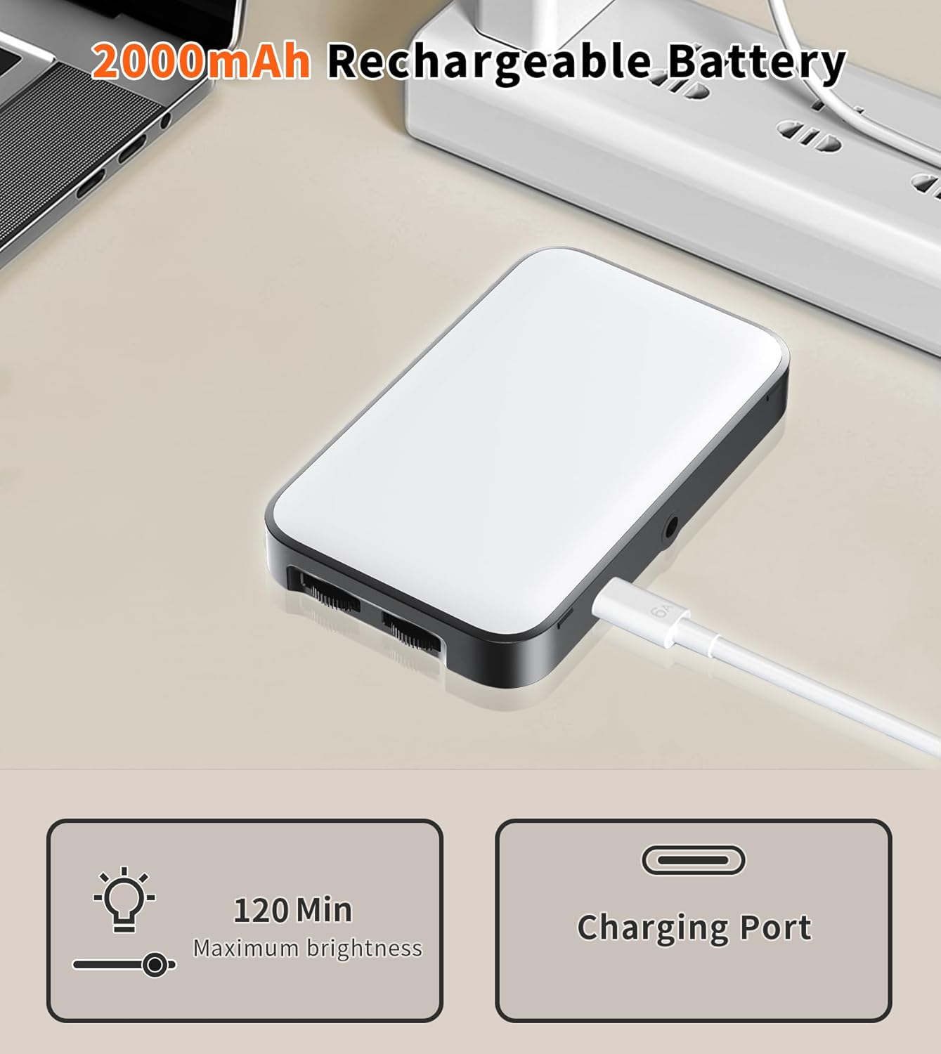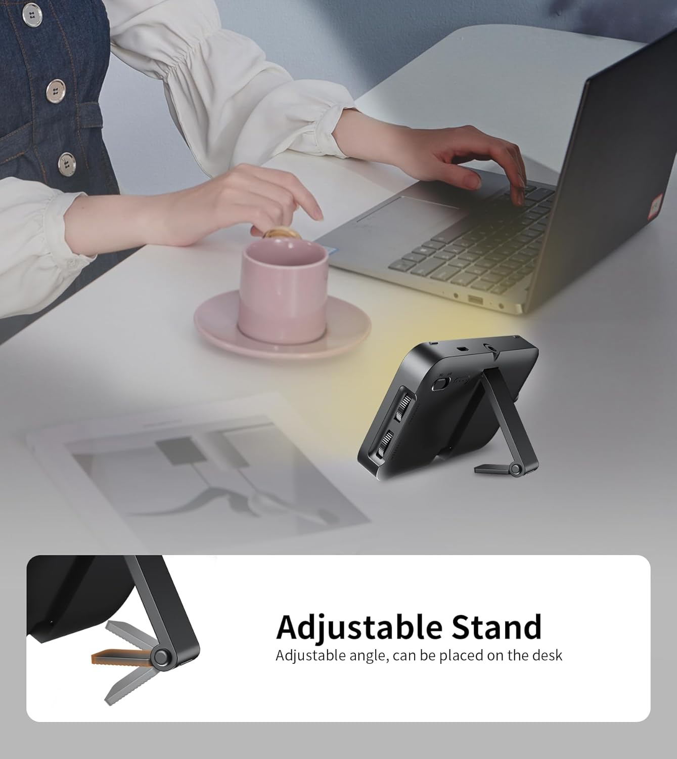 【دعم متعدد الاستخدامات لراحة بدون استخدام اليدين】الجزء الخلفي من المصباح مجهز بحامل ساق مخفي وقابل للتعديل، مما يسمح لك بوضعه على مكتبك أو تعليقه خلف جهاز الكمبيوتر الخاص بك لسهولة الإعداد. بفضل مغناطيسه المدمج، يمكن أيضًا تثبيته على أي سطح معدني، مما يحرر يديك ويمنحك المرونة في استخدامه عندما لا يتوفر حامل الهاتف. مثالي لمكالمات الفيديو أو البث المباشر أو التصوير الإبداعي