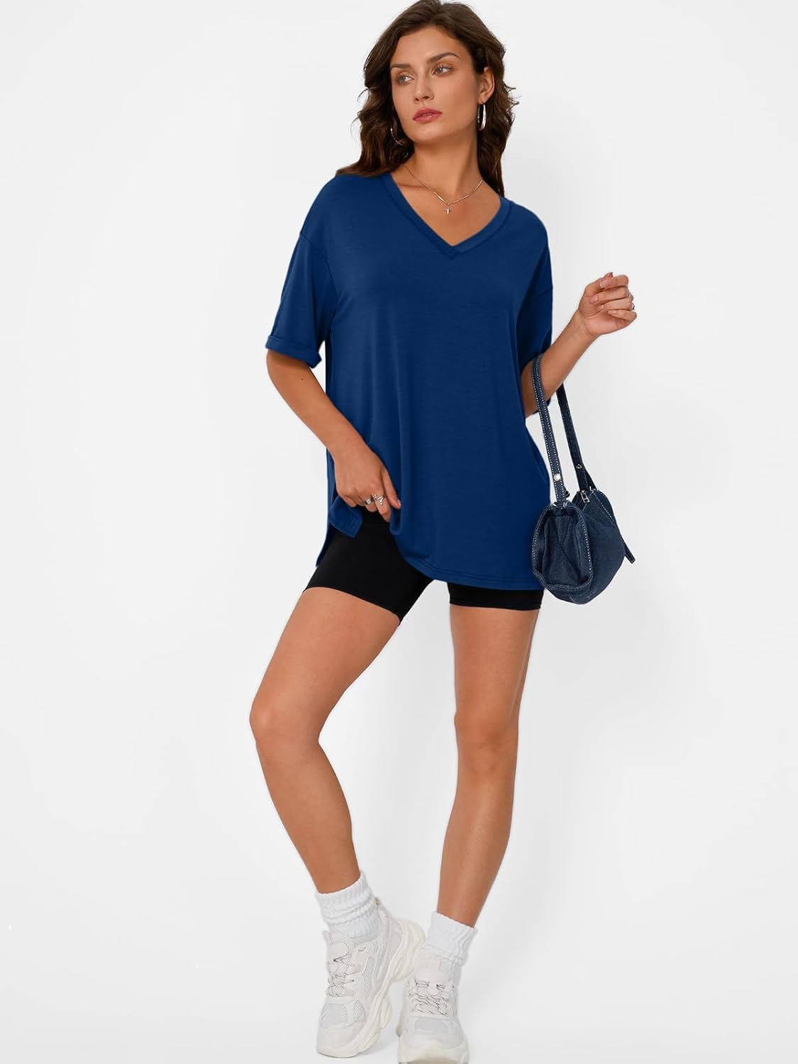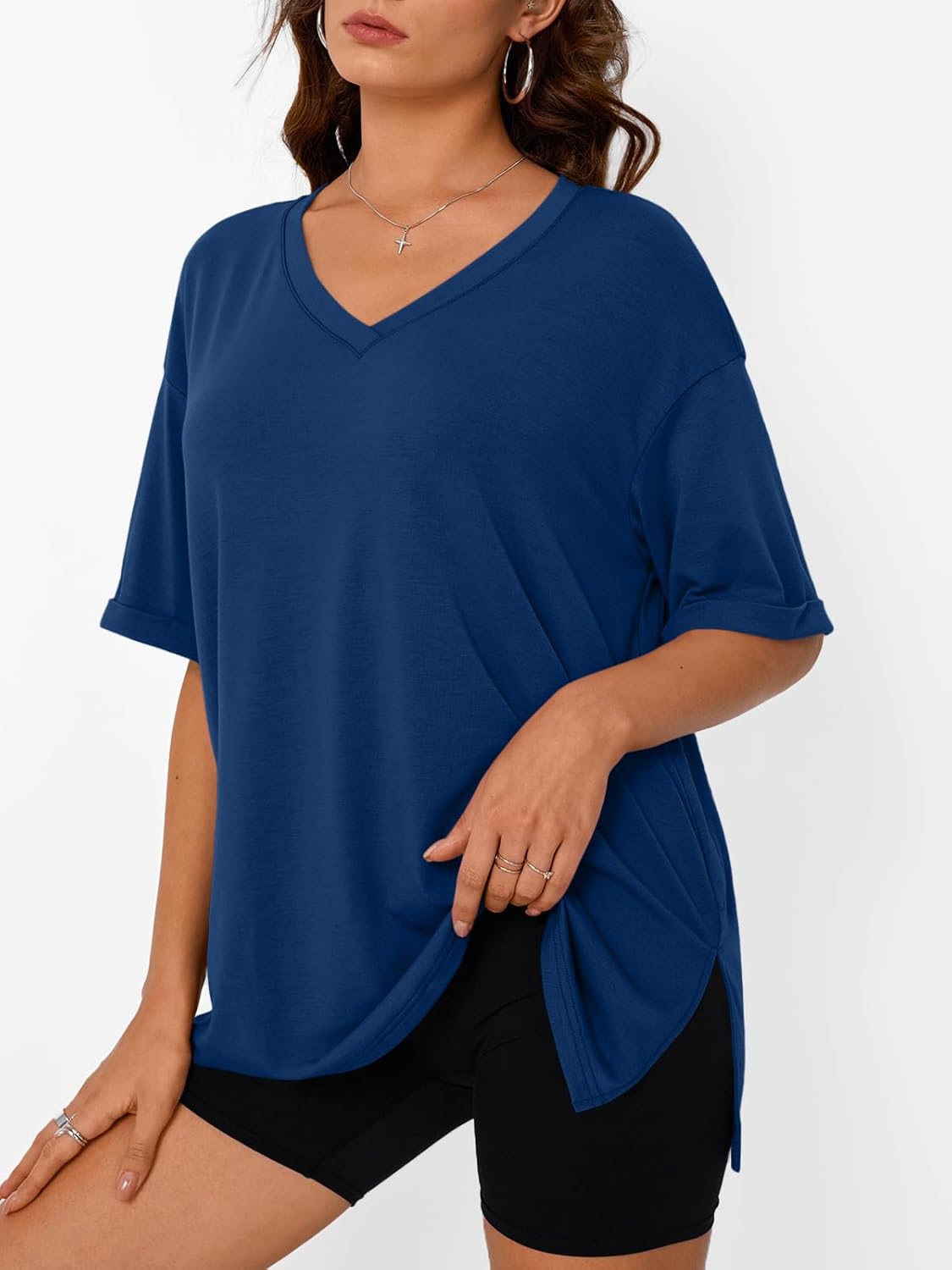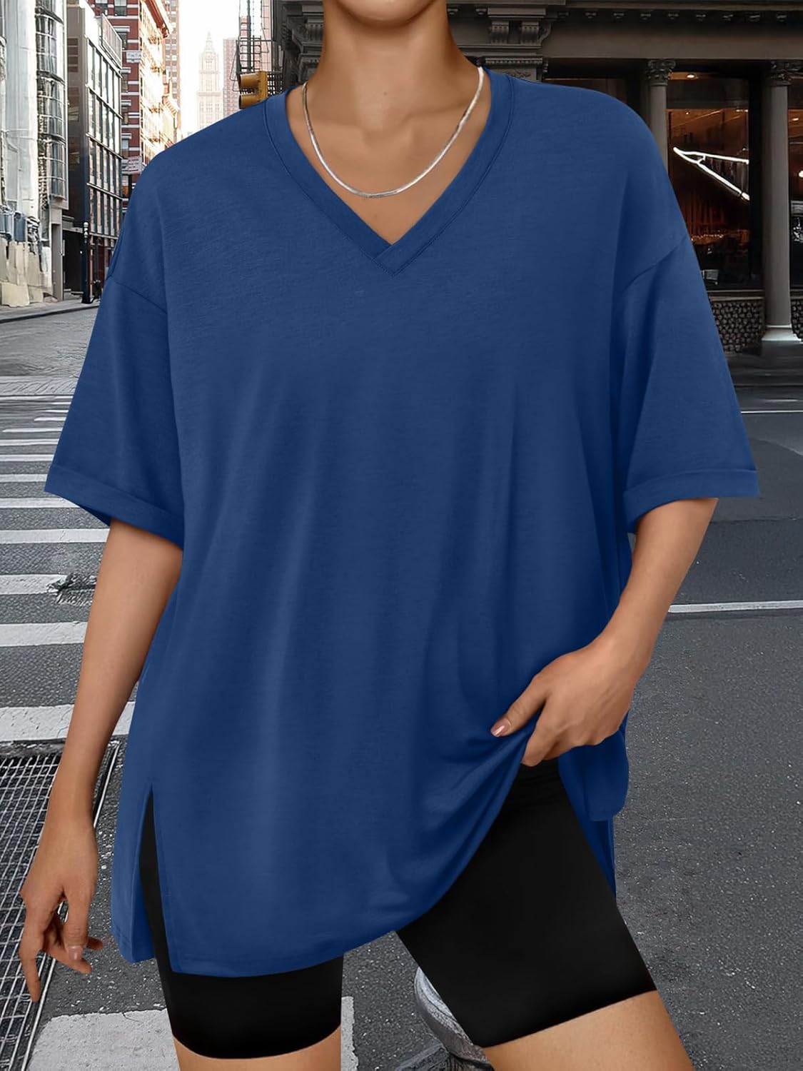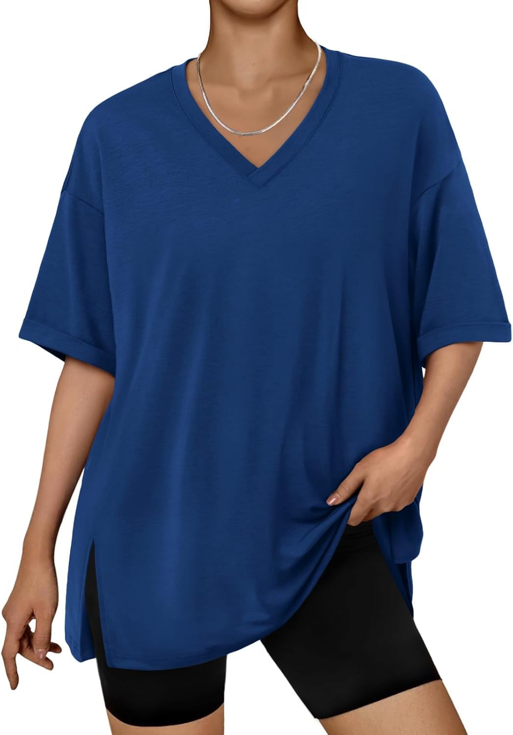 تي شيرت نسائي كبير الحجم برقبة على شكل حرف V
