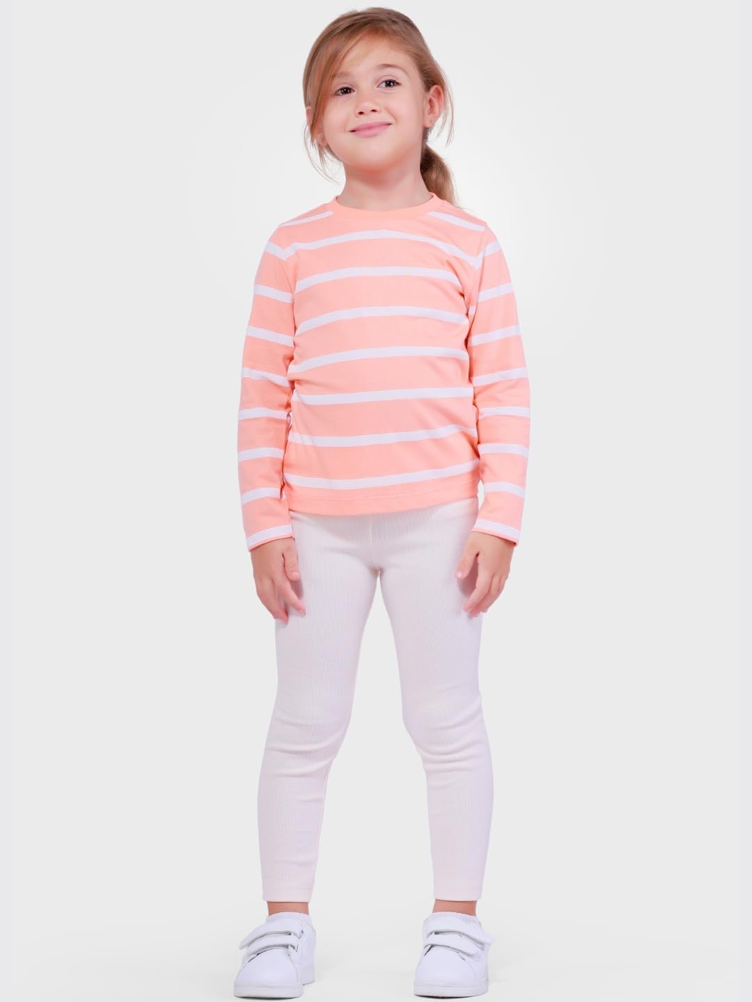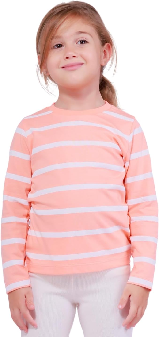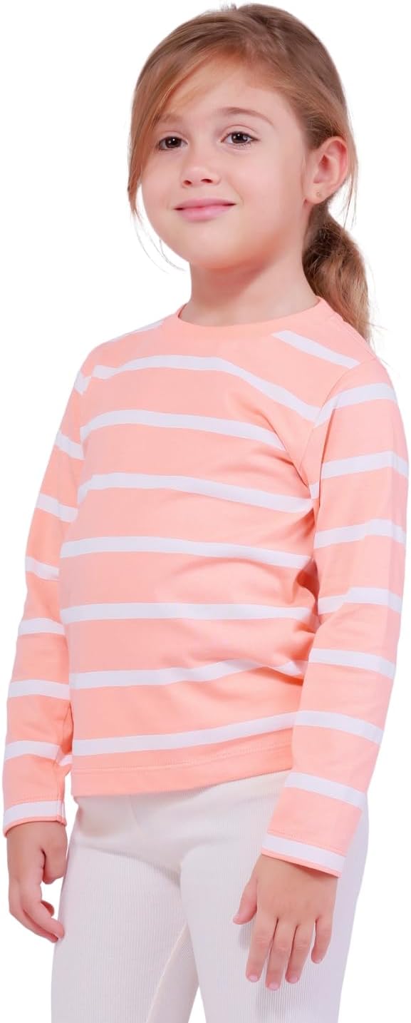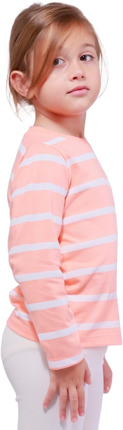 تيشيرتات للبنات الصغار من نويجو – تي شيرتات مخططة لابنتك/فتاتك مصنوعة من القطن العضوي بنسبة 100%، مريحة (بينك)