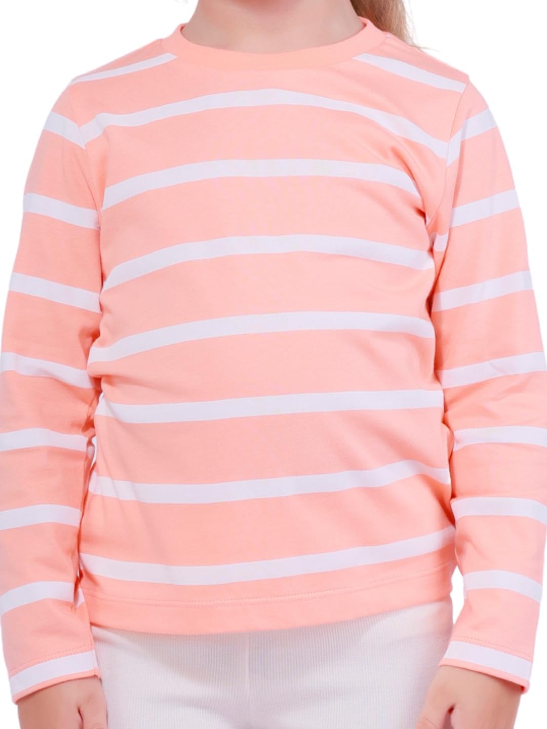 بلوزة مخططة بأكمام طويلة مصنوعة من قماش جيرسي قطني ناعم مع رقبة دائرية.