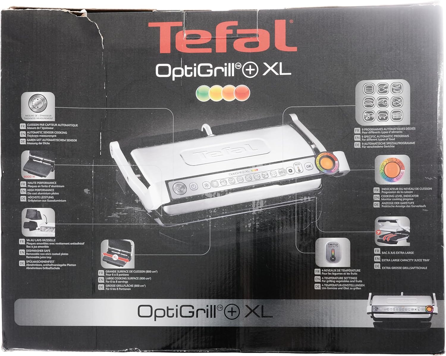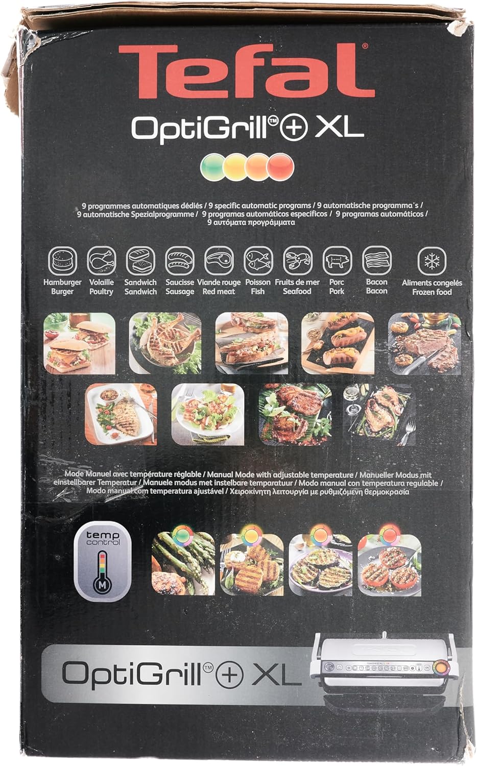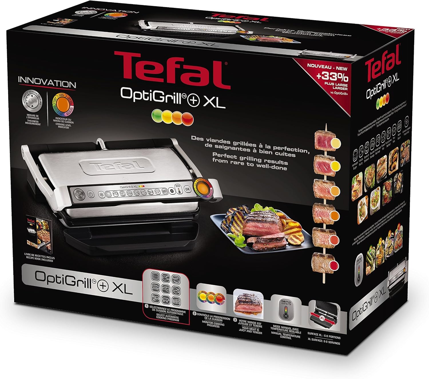 تيفال شواية كهربائية من اوبتي جريل+ XL، 9 برامج، شاشة مستوى الطهي، اطباق XL قابلة للازالة، وضع يدوي، شواية كهربائية، ستانلس ستيل، GC722D16
