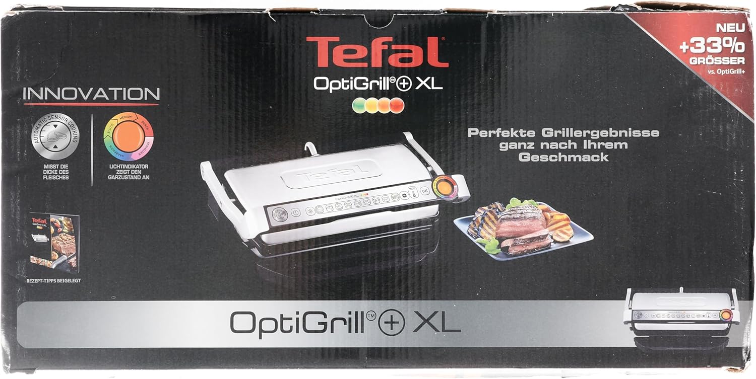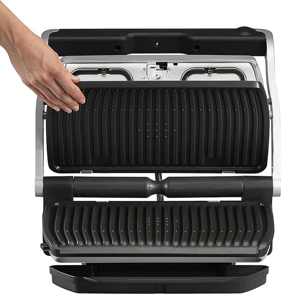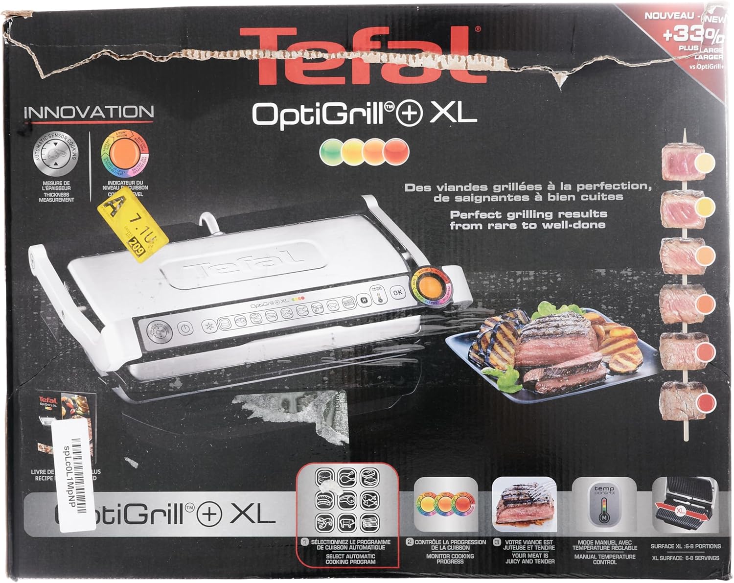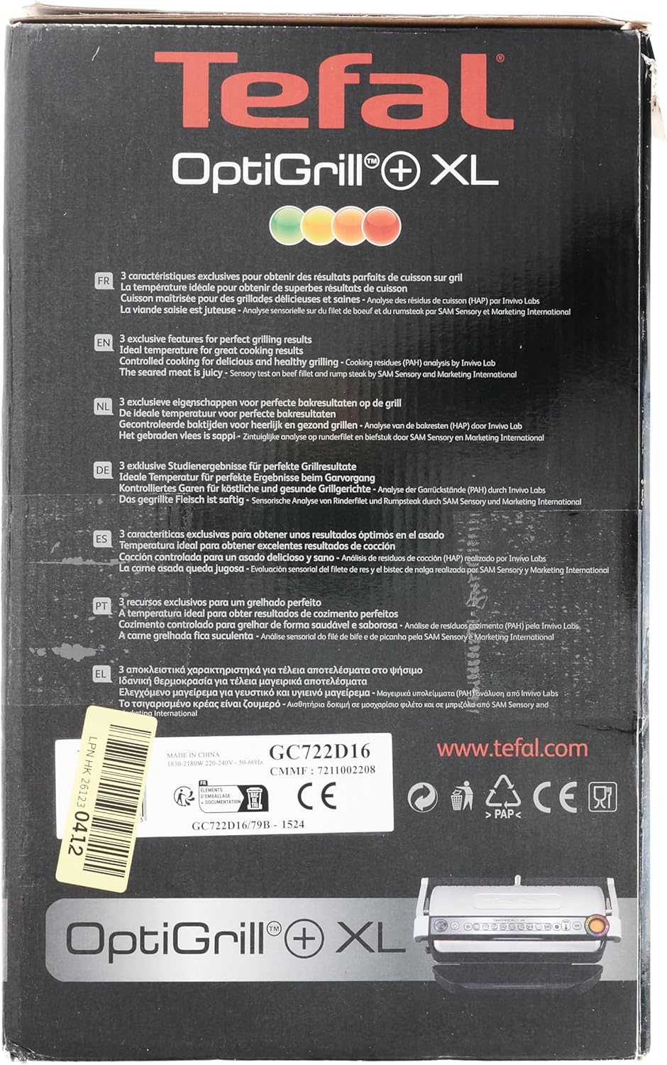 تيفال شواية كهربائية من اوبتي جريل+ XL، 9 برامج، شاشة مستوى الطهي، اطباق XL قابلة للازالة، وضع يدوي، شواية كهربائية، ستانلس ستيل، GC722D16