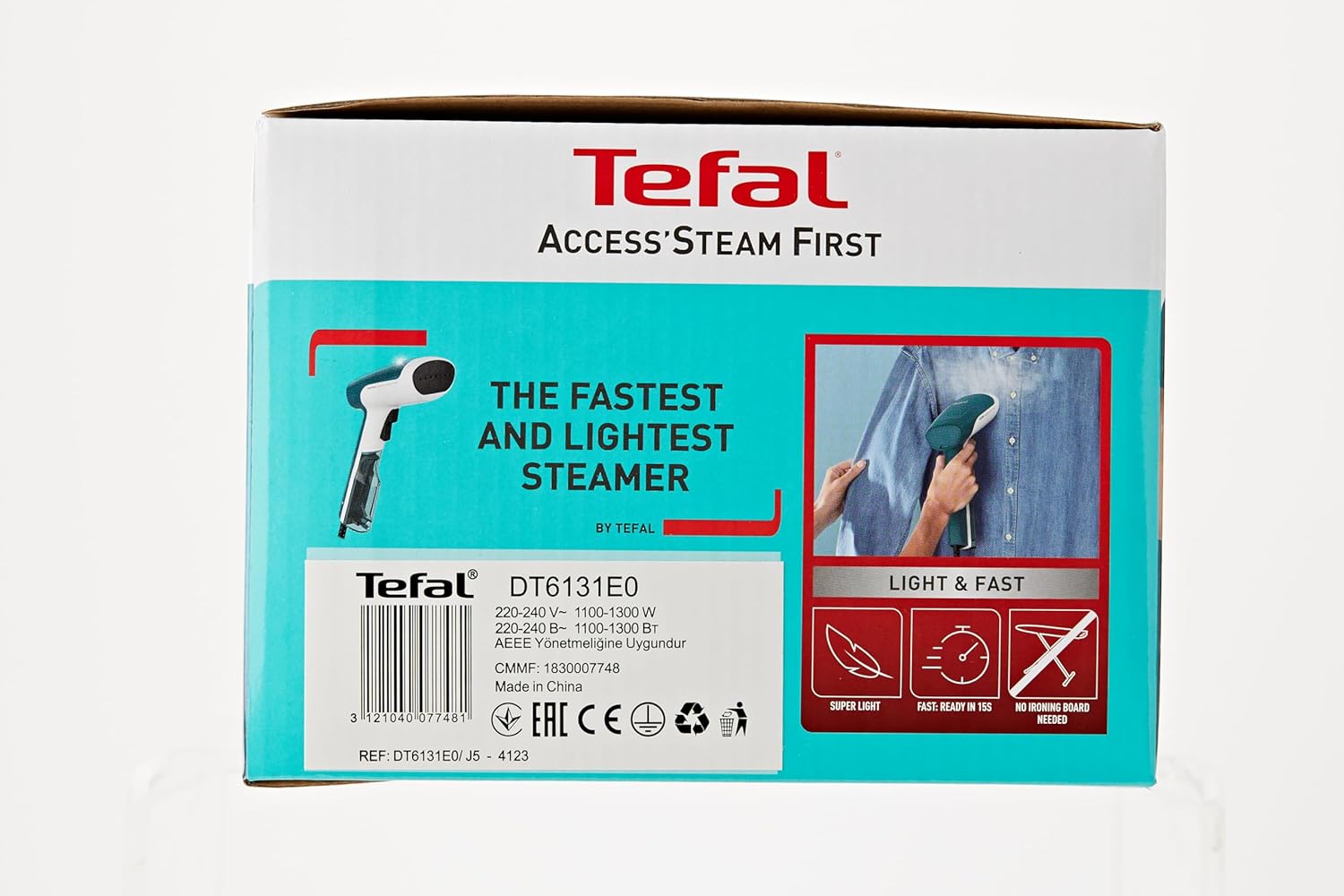 تيفال فرشاة بخار اكسيس ستيم فيرست DT6131، 1300 واط، كمية البخار المستمر: 20 غرام/دقيقة. | وقت تسخين سريع | خفيفة جدًا: 850 غرام | أبيض/أخضر