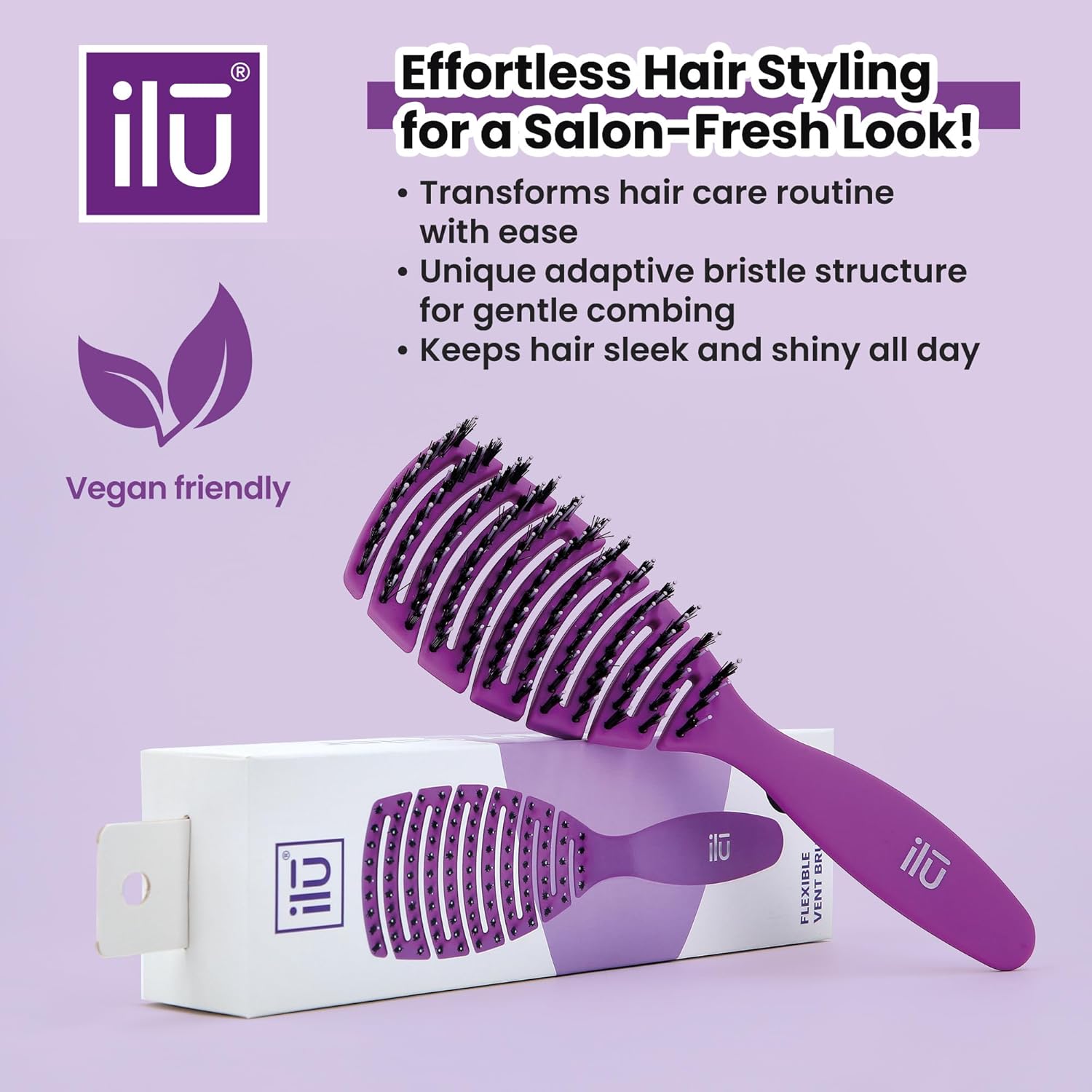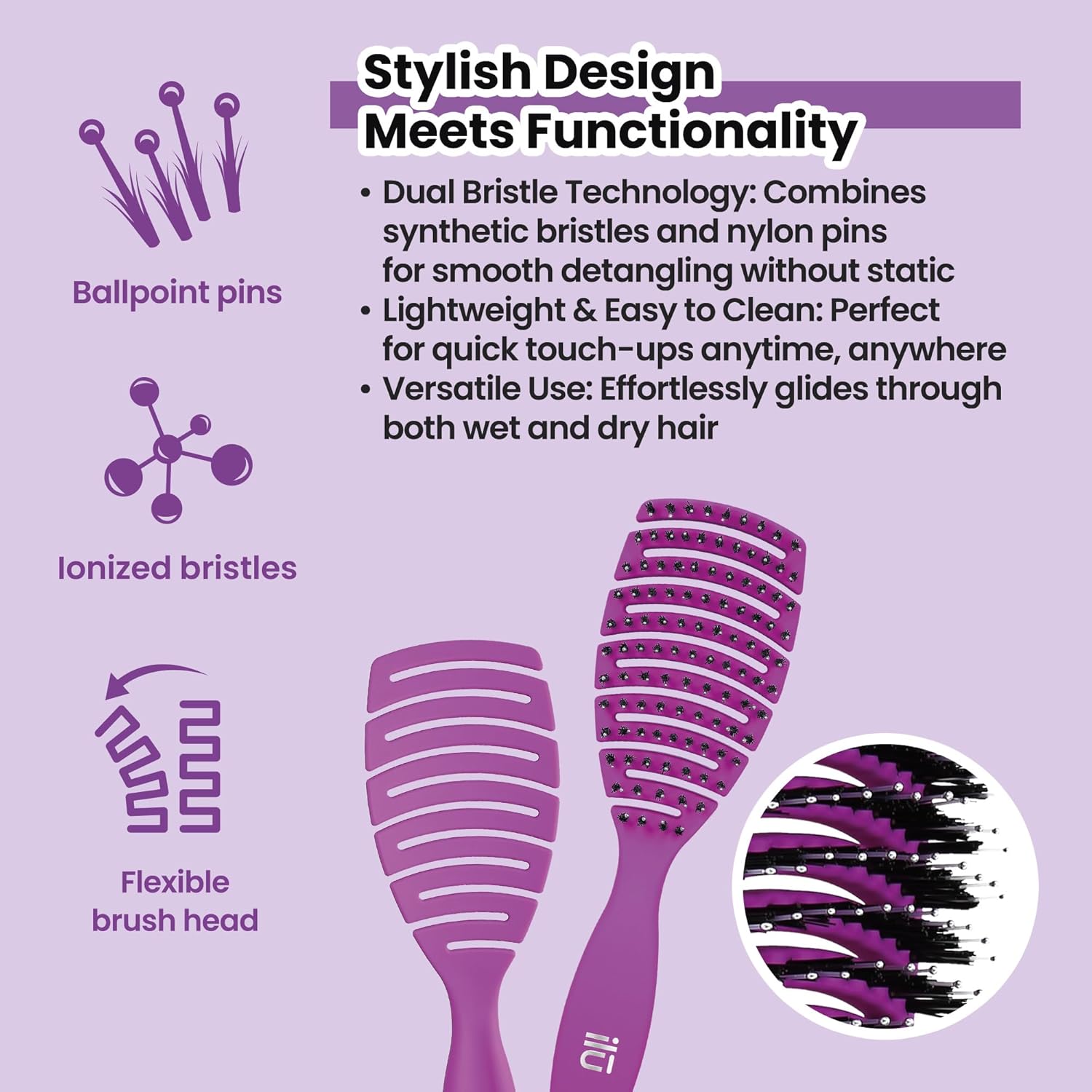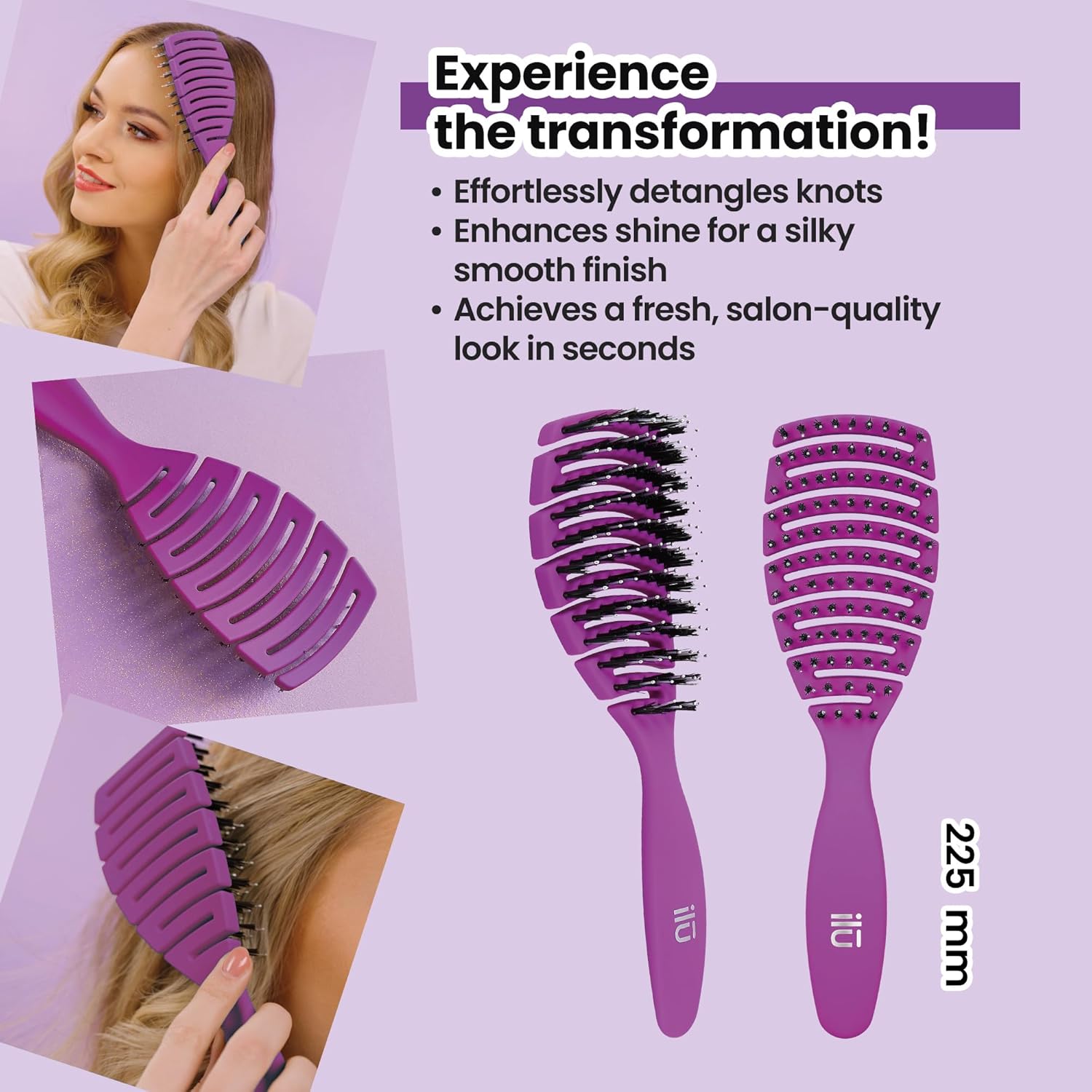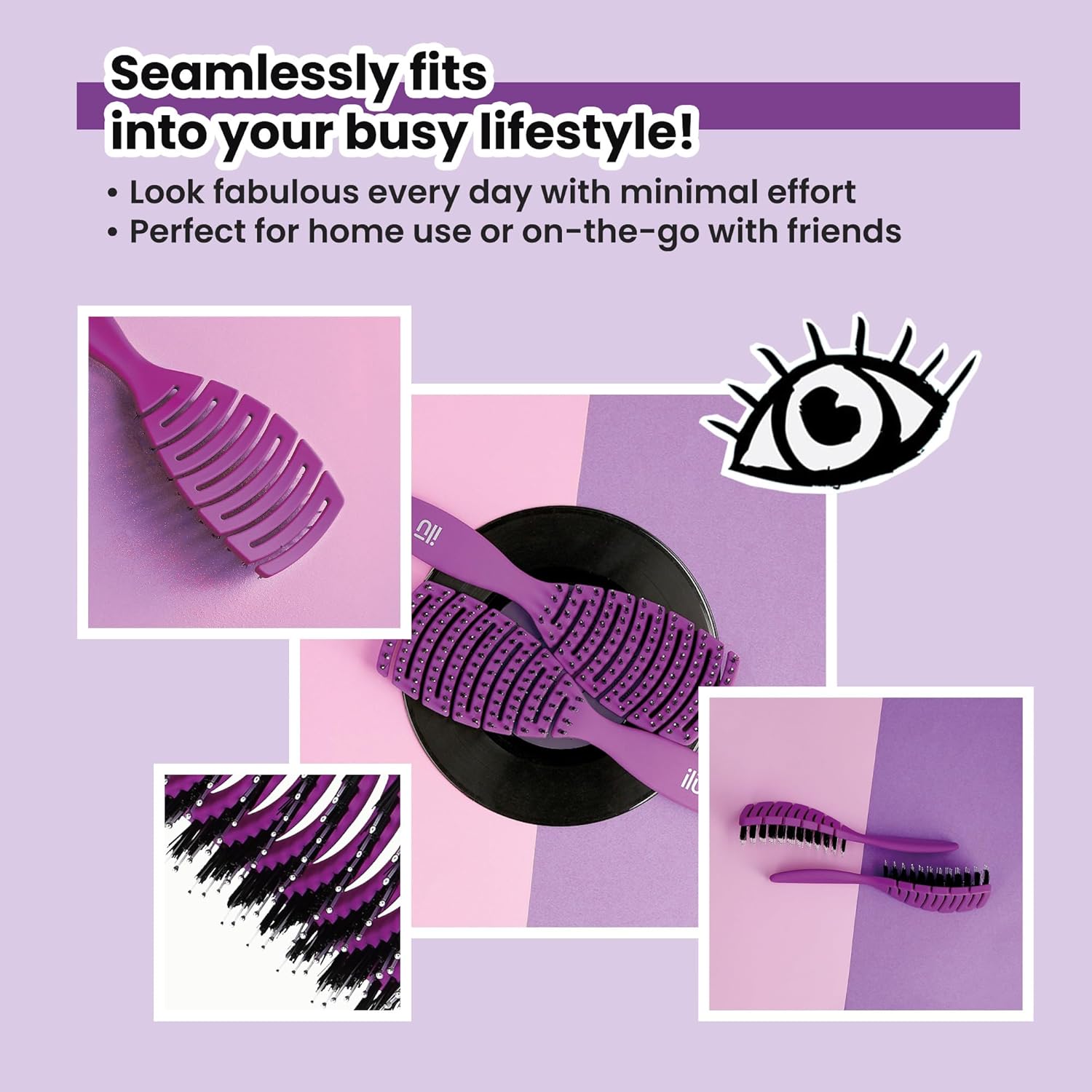 بدون كهرباء. مثالي للشعر الطويل والأقصر. فرشاة شعر ايلو تناسب حقيبة يدك بسهولة.