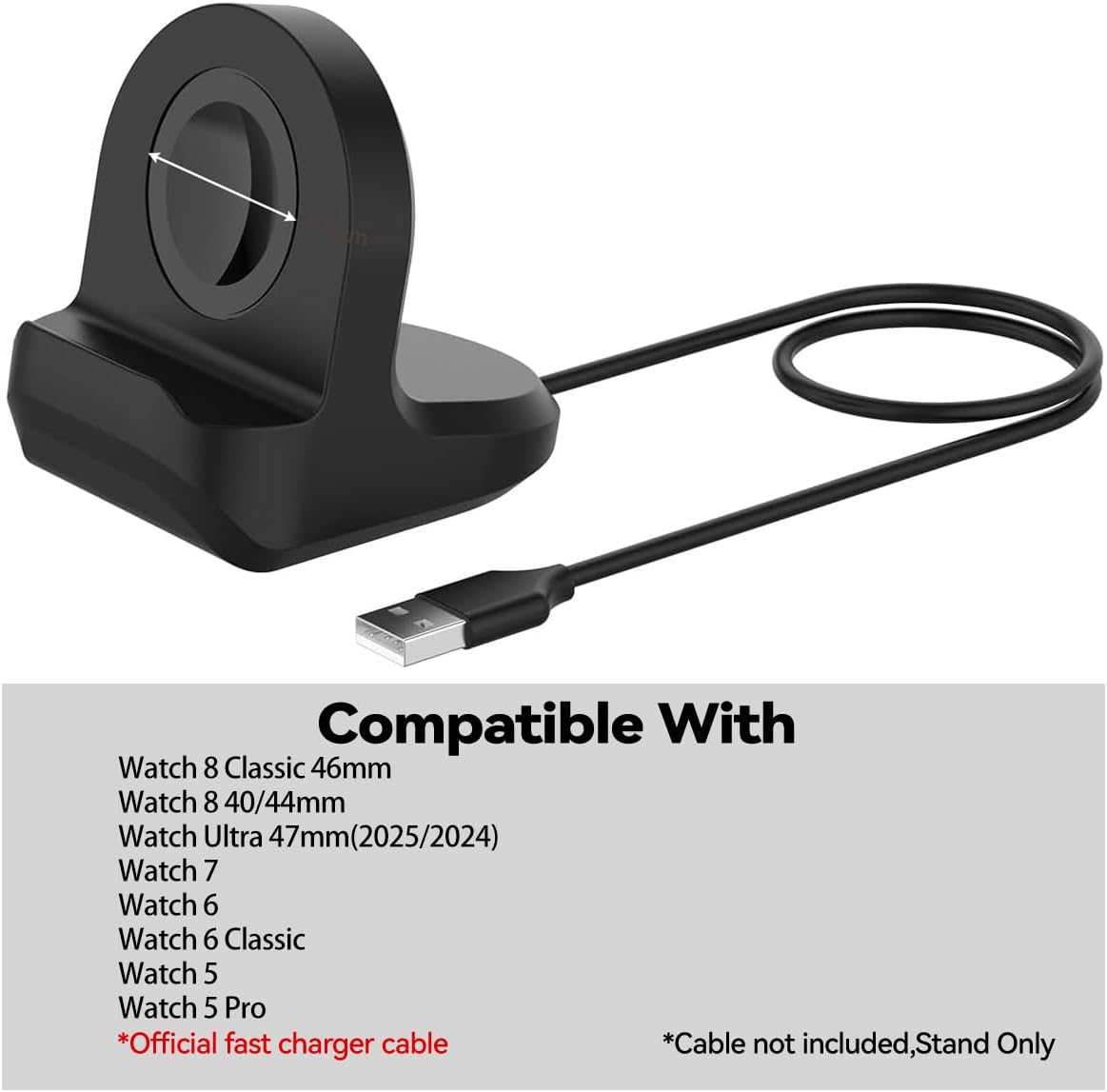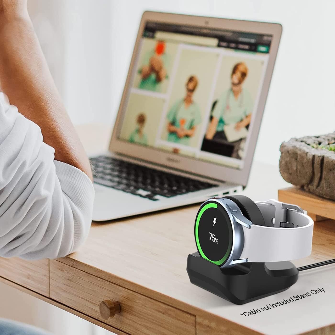 تي تيرسيلي حامل شاحن لساعة سامسونج جالاكسي 7/FE/6/5/4 40 ملم 44 ملم، ووتش 6/4 كلاسيك 43 ملم 47 ملم/42 ملم 46 ملم، ووتش 5 برو 45 ملم، قاعدة شحن سيليكون لادارة الكابلات لسامسونج