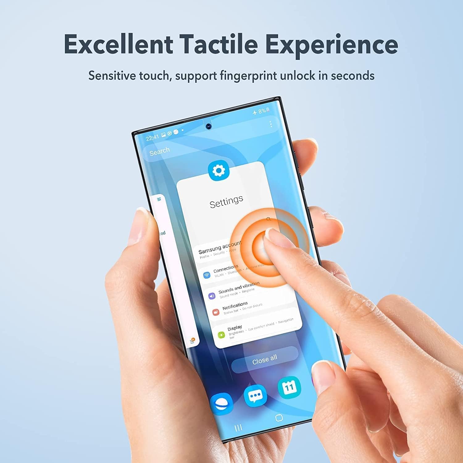 【شفافية بنسبة 99.9%】فائقة الوضوح مع شفافية شاشة بنسبة 99.9% تسمح بتجربة مشاهدة طبيعية. تجلب جودة صورة مشرقة وملونة، مما يحافظ على تجربة بصرية أصلية لك. تقنية اللمس اللمسية عالية الاستجابة، تدعم جميع طرق فتح القفل، بما في ذلك فتح بصمات الأصابع. التأثير البصري واللمس أثناء الاستخدام كما هو الحال على الشاشة العارية. وفي الوقت نفسه، ستحصل على أفضل شعور باللمس عند لعب الألعاب!
