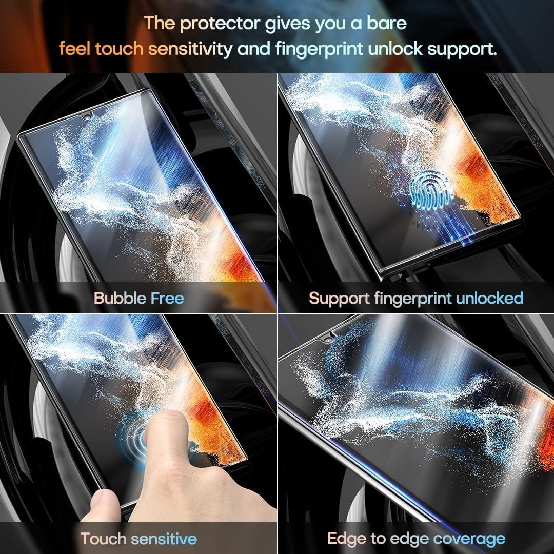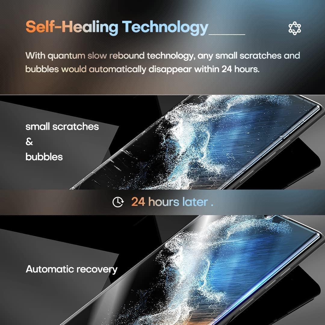 【تصميم فريد】واقي الشاشة متوافق فقط مع سامسونج جالاكسي S23 الترا 6.8 انش. يمكنك مشاهدة فيديو التركيب قبل تركيب واقي الشاشة. الفيديو موجود في صور المنتج. إذا كانت هناك خدوش وفقاعات صغيرة بعد التركيب، فلا تقلق وانتظر بصبر، فسوف يتعافى تلقائيًا في غضون 24 ساعة.