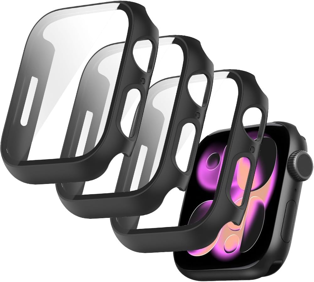 تي تيرسيلي (3 قطع) جراب متوافق مع ساعة ابل سلسلة 11/10-46 ملم، واقي شاشة مدمج رفيع HD من الزجاج المقسى بديل لساعة اي ووتش S11/S10 2024 (اسود)