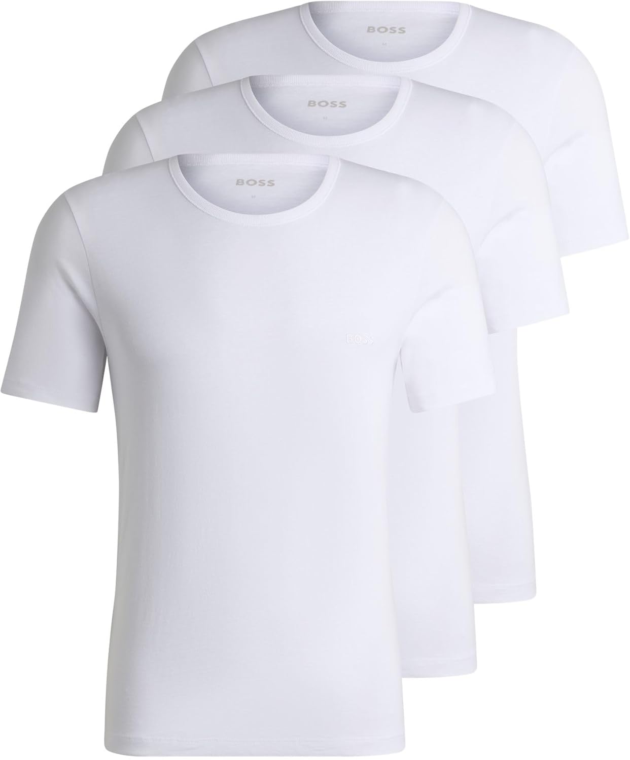 هوغو بوس تي شيرت داخلي كلاسيكي للرجال 13964205015 50475284 RN يتميز بياقة ذات حواف خام. مجموعة من ثلاثة تيشيرتات داخلية بأكمام قصيرة من بوس. تتميز هذه التيشيرتات بقبة دائرية ضيقة مطرزة بشعار بوس على الجانب الأيسر من الصدر، وهي مصنوعة من قطن جيرسي فردي لتوفير الراحة اليومية. تتميز كل بلوزة بقصة عادية سهلة الارتداء. عبوة من 3 تيشيرتات متوفرة باللون الأزرق الداكن/الرمادي الداكن/الأسود ومقاس L.