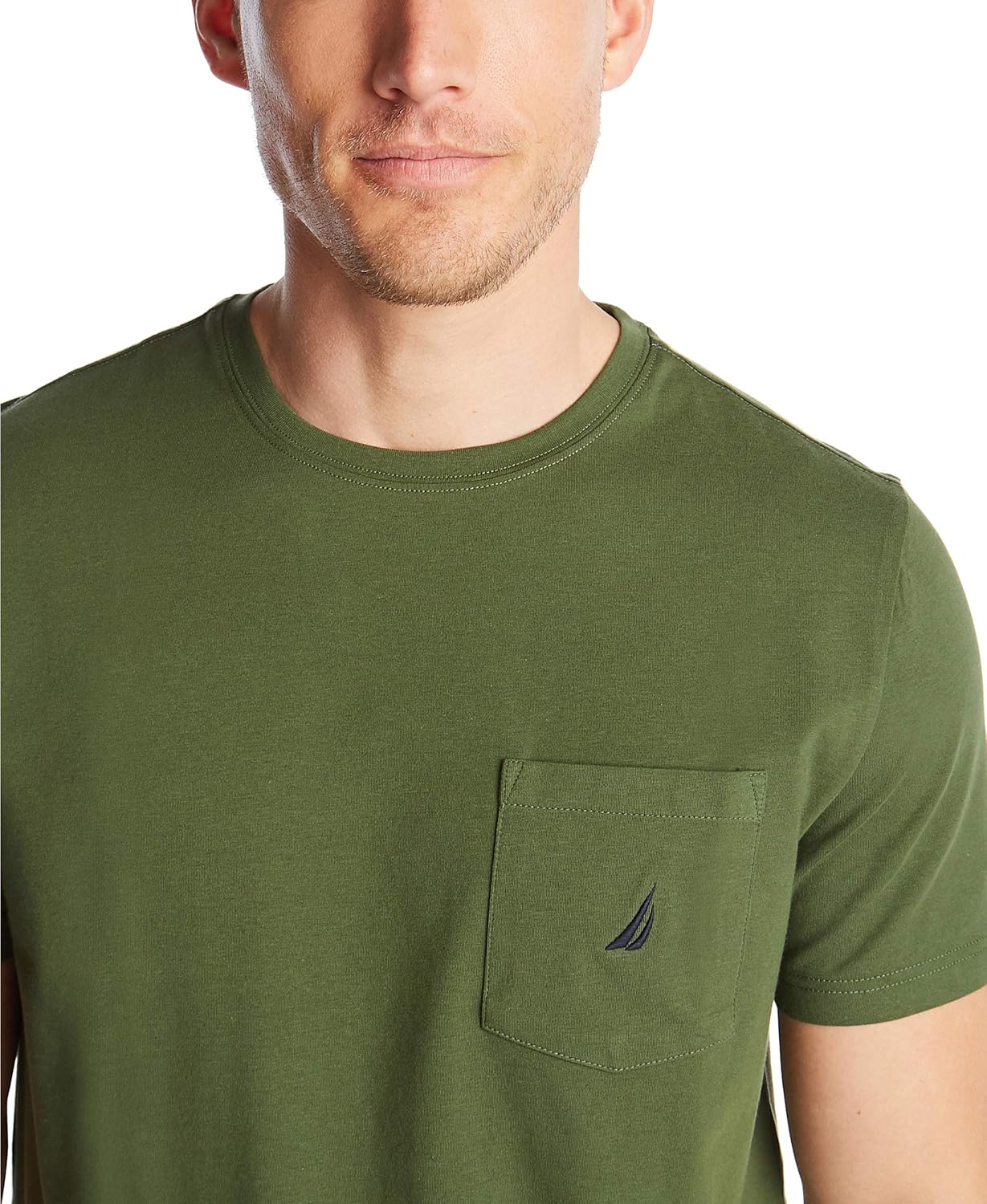 تي شيرت برقبة دائرية بدون طوق وأكمام قصيرة وجيب للرجال من نوتيكا، لون موحد
