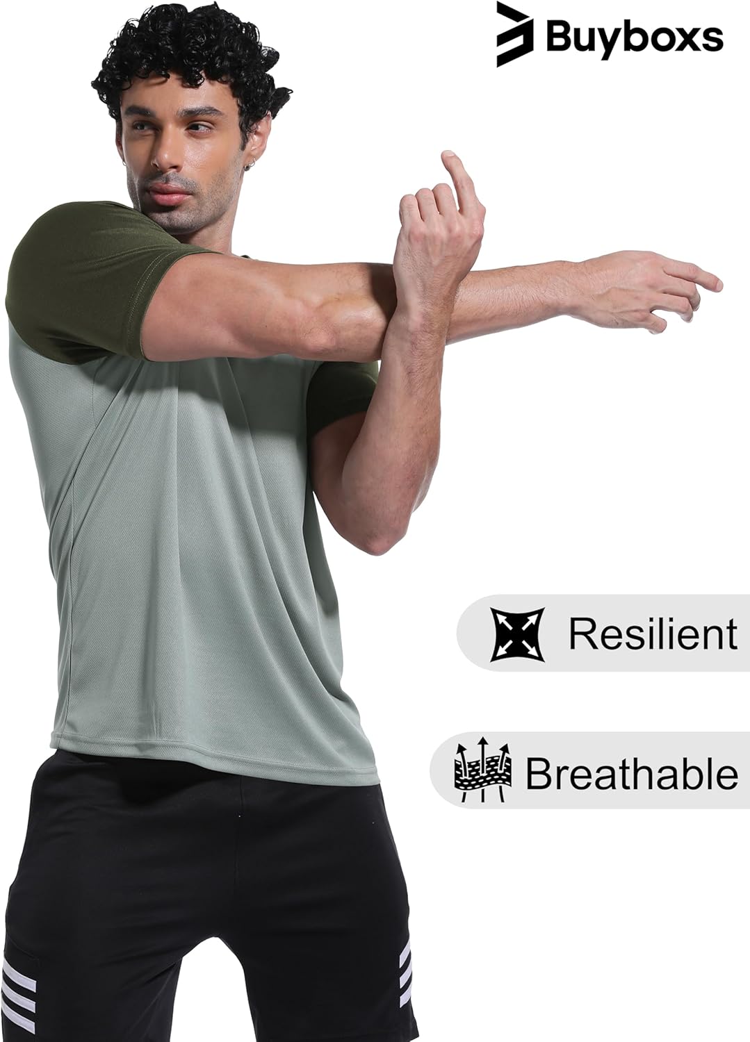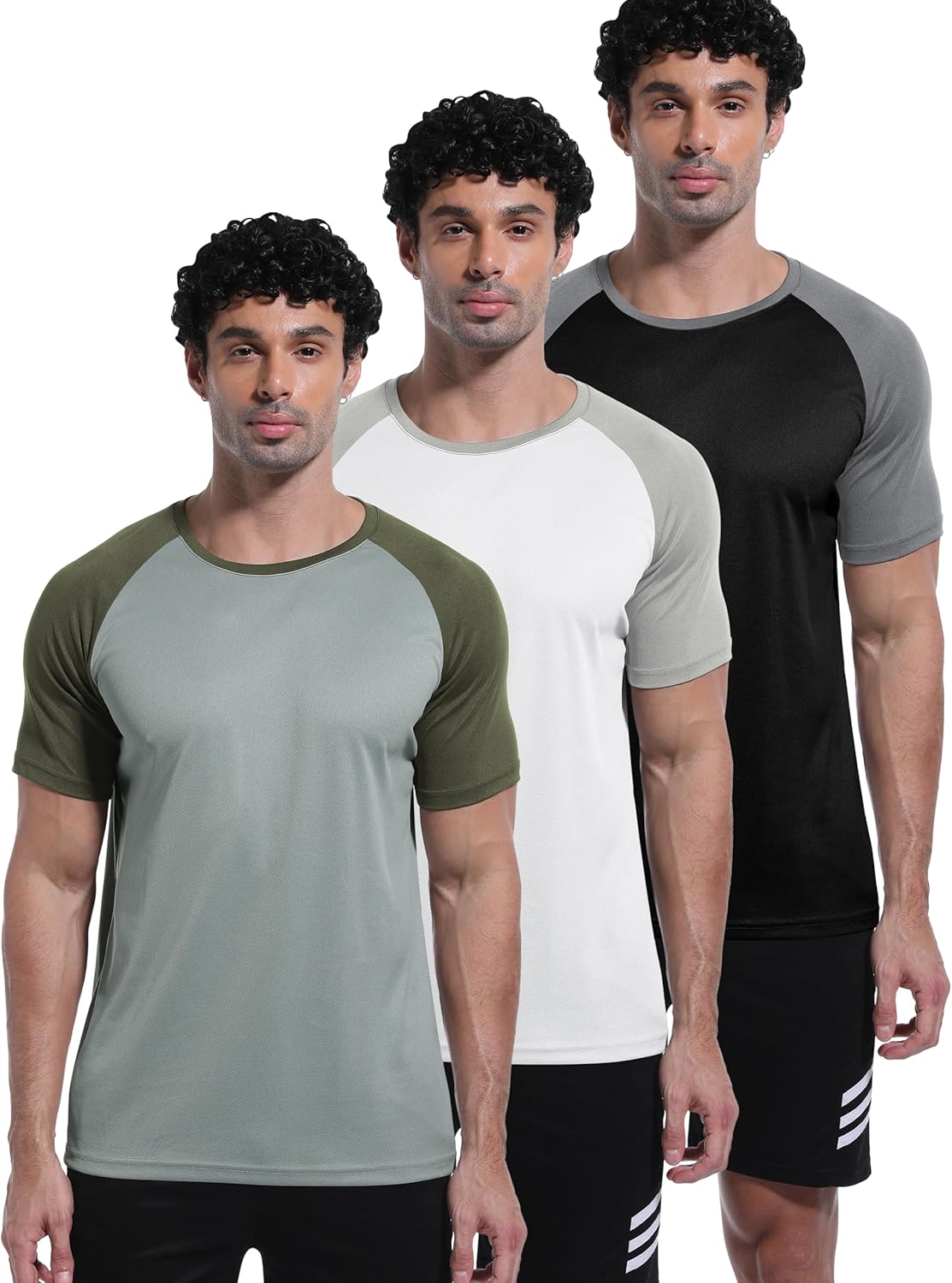 تي شيرت رياضي سريع الجفاف وجيد التهوية باكمام قصيرة للرجال من 3 قطع