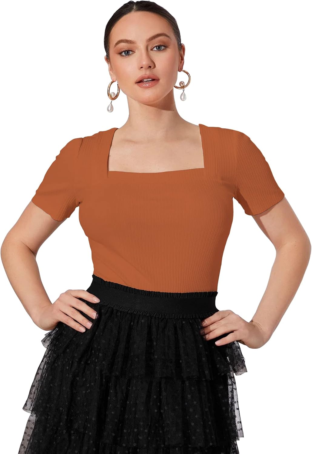 شراء تي شيرت سادة محبوك برقبة مربعة واكمام قصيرة منفوخة للنساء والفتيات من شاسمي اون لاين من امازون او نون وحراج تي شيرت سادة محبوك برقبة مربعة واكمام قصيرة منفوخة للنساء والفتيات من شاسمي