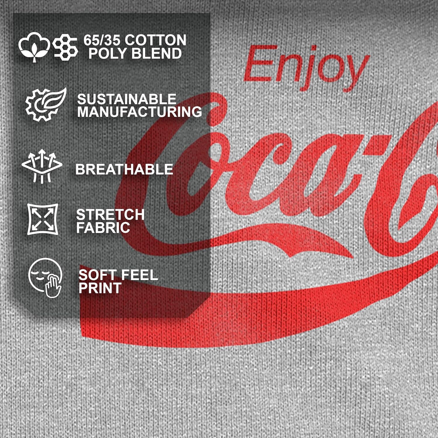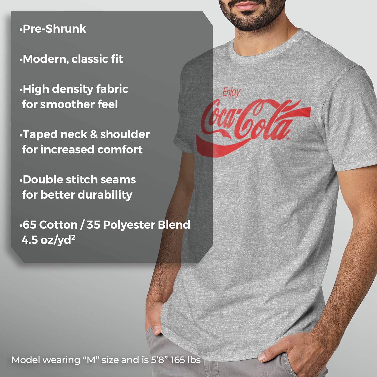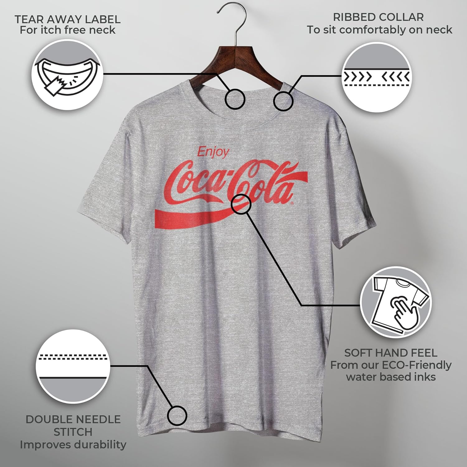 Enjoy an icy cold coke while wearing this red heather t-shirt. Enjoy Coca-Cola is printed on this graphic tee to let everyone know your true love for coke-cola.