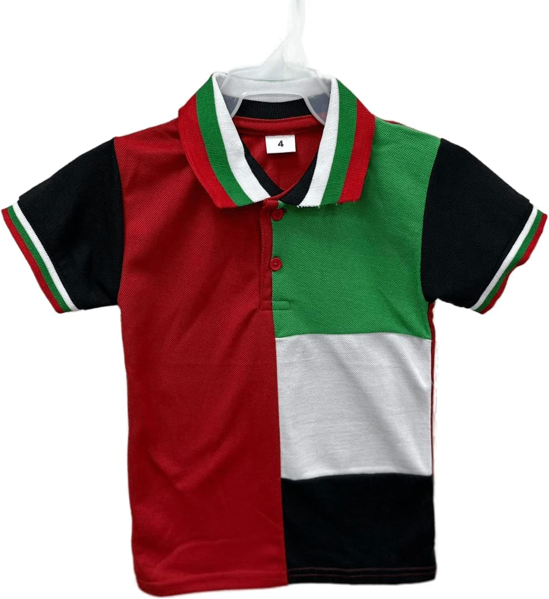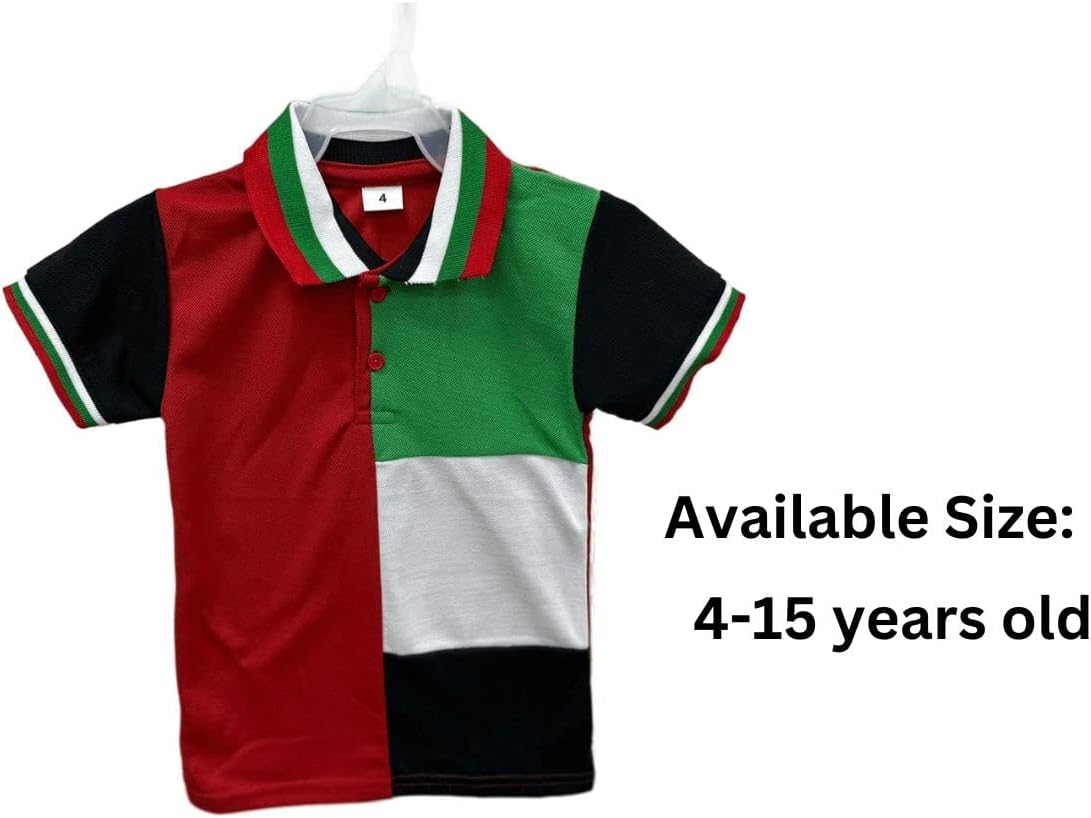في هذا اليوم الوطني لدولة الإمارات العربية المتحدة، يمكن لطفلك الصغير الاحتفال بفخر الأمة مع تي شيرت يوم علم الإمارات العربية المتحدة!! ميزات تي شيرت اليوم الوطني هذا هي كما يلي: – المادة: قطن – نمط الرقبة: رقبة بولو – طول الكم: أكمام قصيرة – المجموعة المستهدفة: للجنسين – نوع الملاءمة: قصة كلاسيكية – المقاسات المتاحة: من 3 إلى 15 سنة