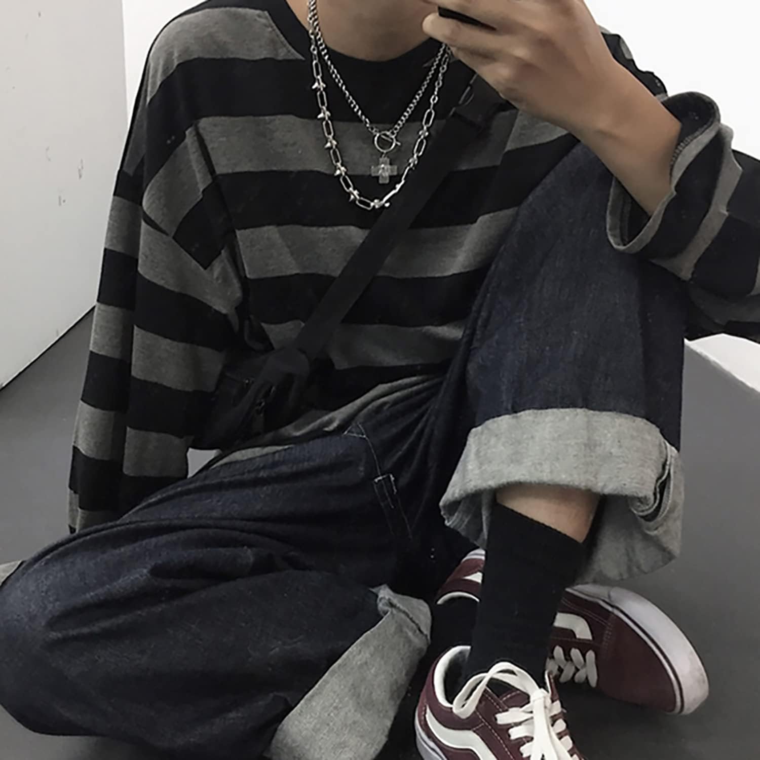 شراء تي شيرت مخطط هاراجوكو للنساء، ملابس الجرونج القوطي Y2K، بلايز طويلة الاكمام قمصان كبيرة الحجم اون لاين من امازون او نون وحراج تي شيرت مخطط هاراجوكو للنساء، ملابس الجرونج القوطي Y2K، بلايز طويلة الاكمام قمصان كبيرة الحجم