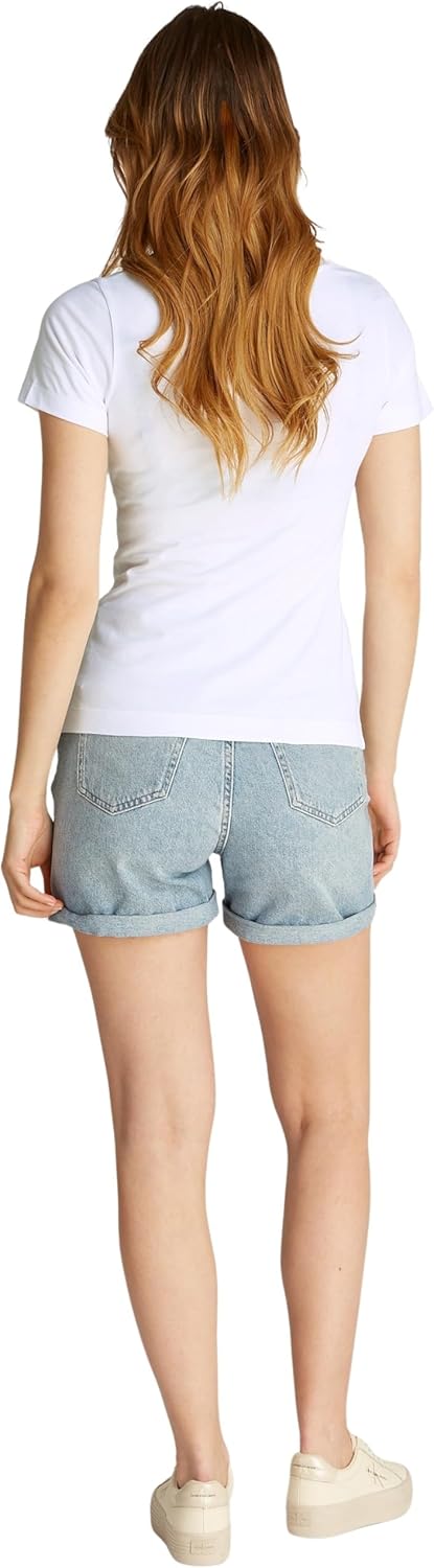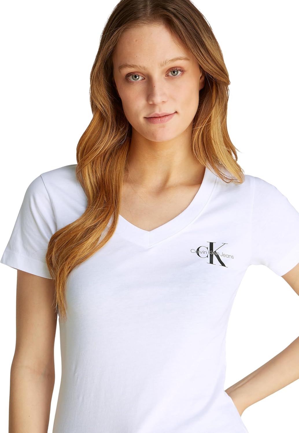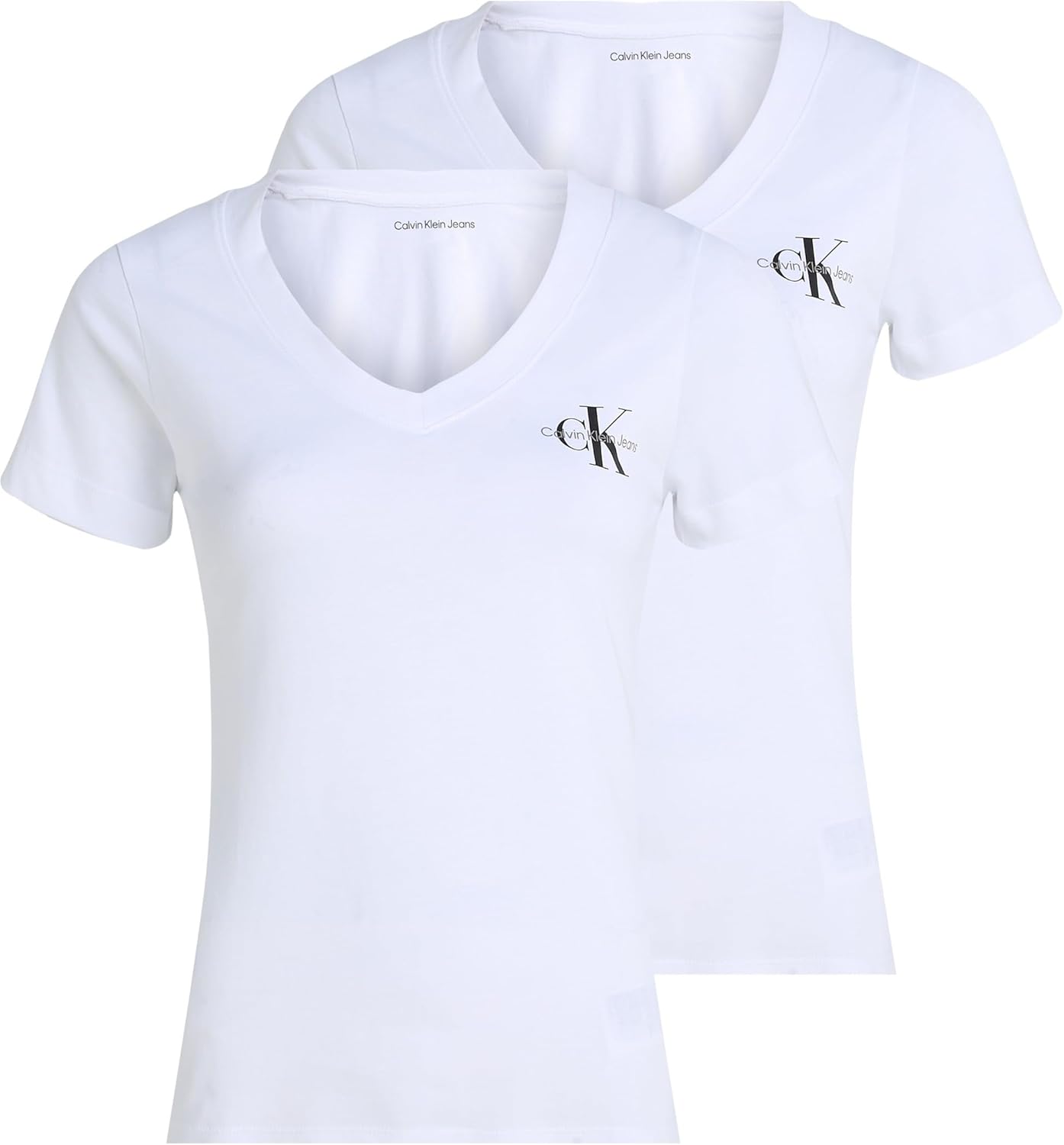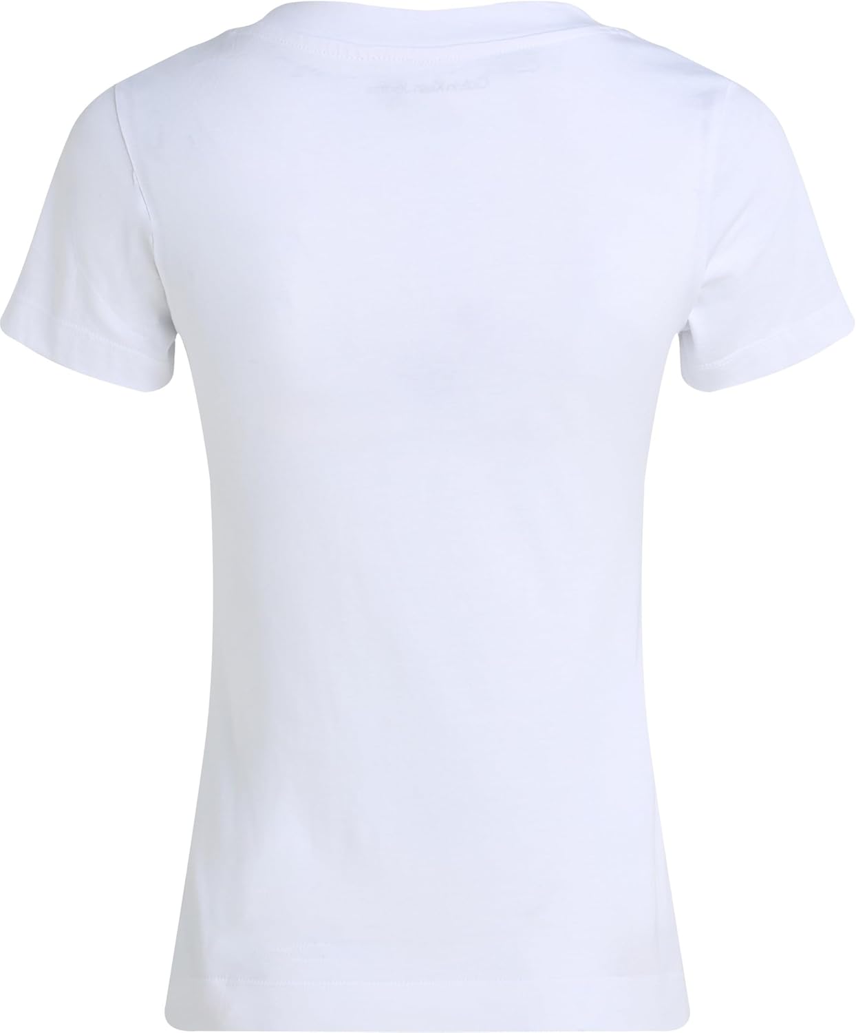 كالفن كلاين تي شيرت مونولوجو برقبة على شكل حرف V للنساء من قطعتين بلون أسود وأبيض ساطع مقاس XS