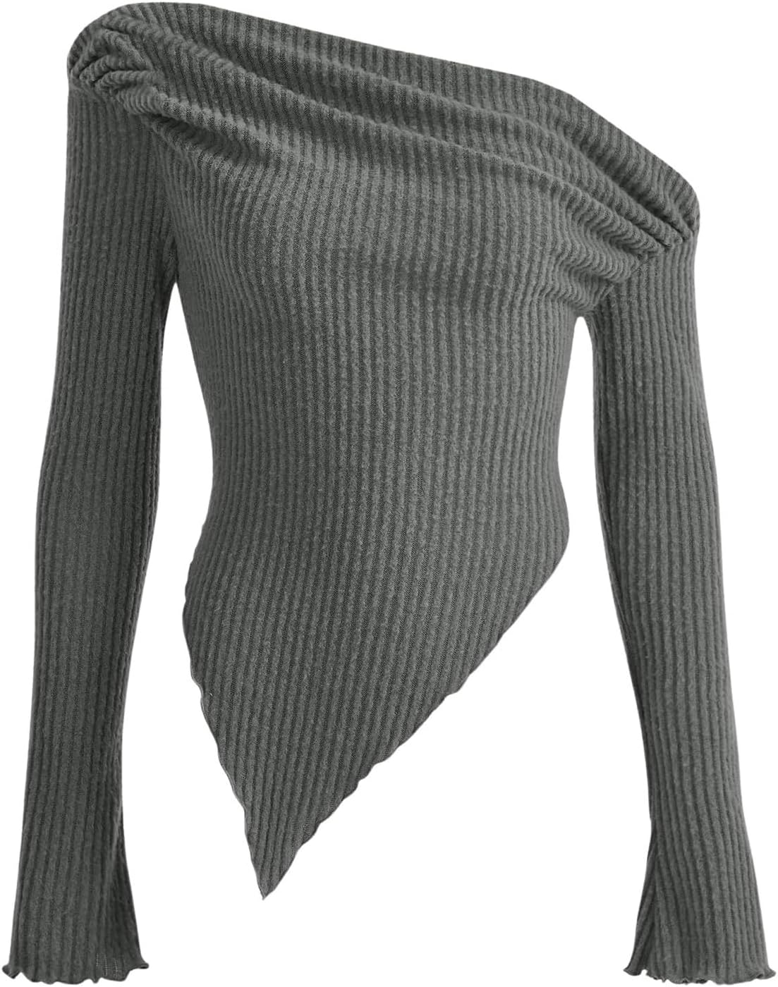 شراء تي شيرت نسائي غير متماثل مضلع منسوج باكمام طويلة مكشكشة وقصة ضيقة من جورجليتر اون لاين من امازون او نون الامارات تي شيرت نسائي غير متماثل مضلع منسوج باكمام طويلة مكشكشة وقصة ضيقة من جورجليتر
