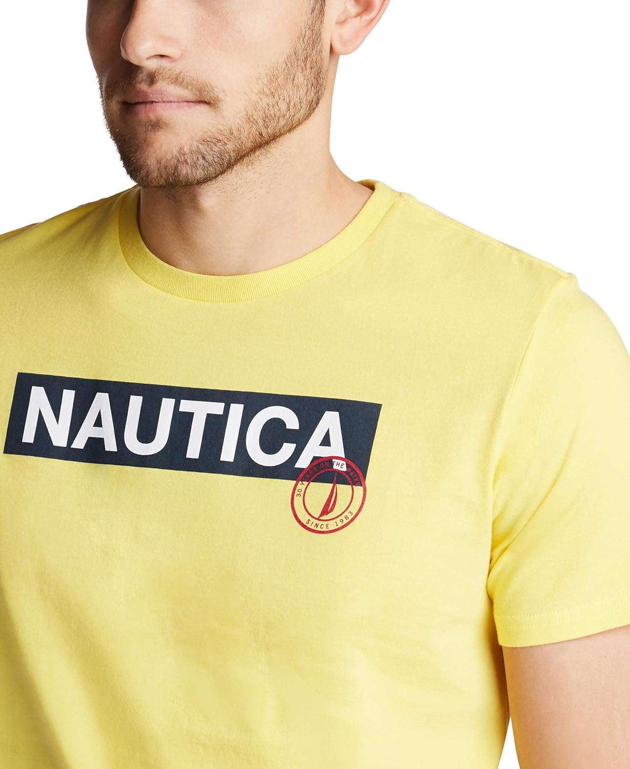 تي شيرت نوتيكا رجالي قصير الأكمام 100% قطن كلاسيكي شعار سلسلة جرافيك