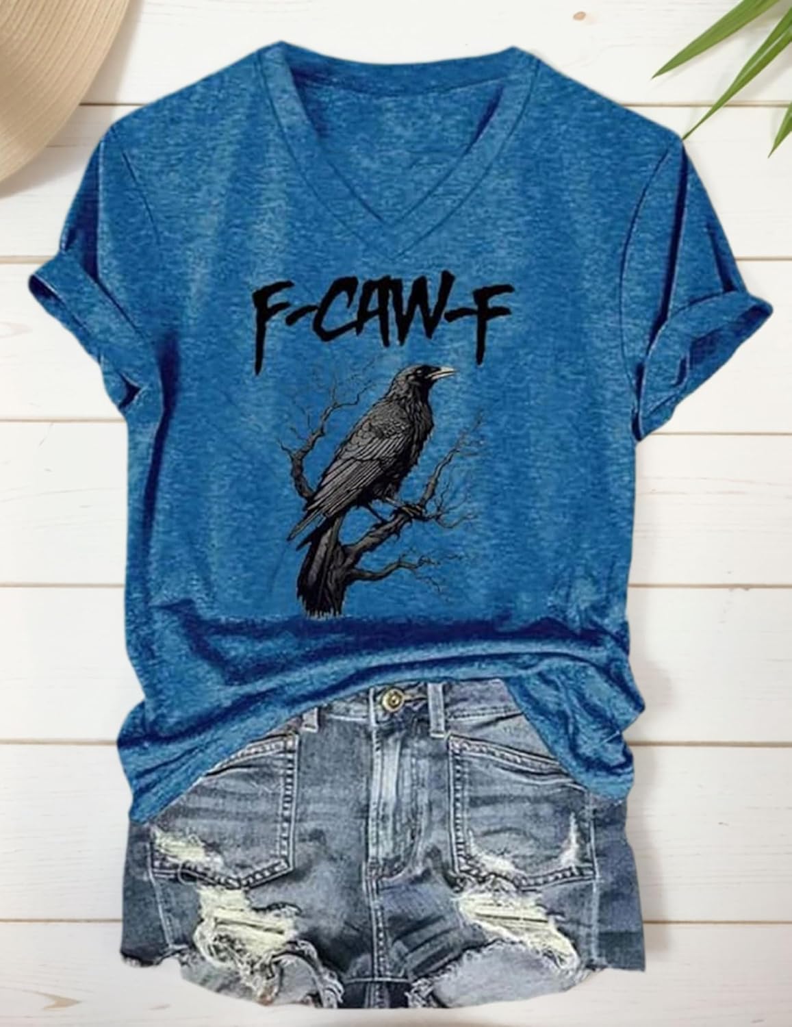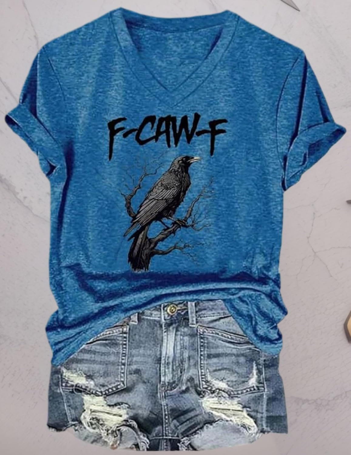 شراء تي شيرت F-Caw-F برقبة على شكل حرف V مضحك مطبوع عليه طائر اسود للنساء اون لاين من امازون او نون وحراج تي شيرت F-Caw-F برقبة على شكل حرف V مضحك مطبوع عليه طائر اسود للنساء