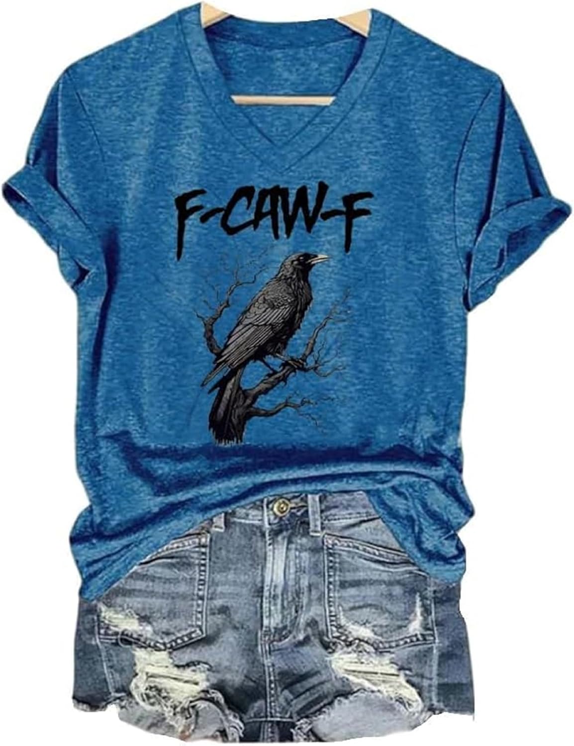 شراء تي شيرت F-Caw-F برقبة على شكل حرف V مضحك مطبوع عليه طائر اسود للنساء اون لاين من امازون او نون الامارات تي شيرت F-Caw-F برقبة على شكل حرف V مضحك مطبوع عليه طائر اسود للنساء