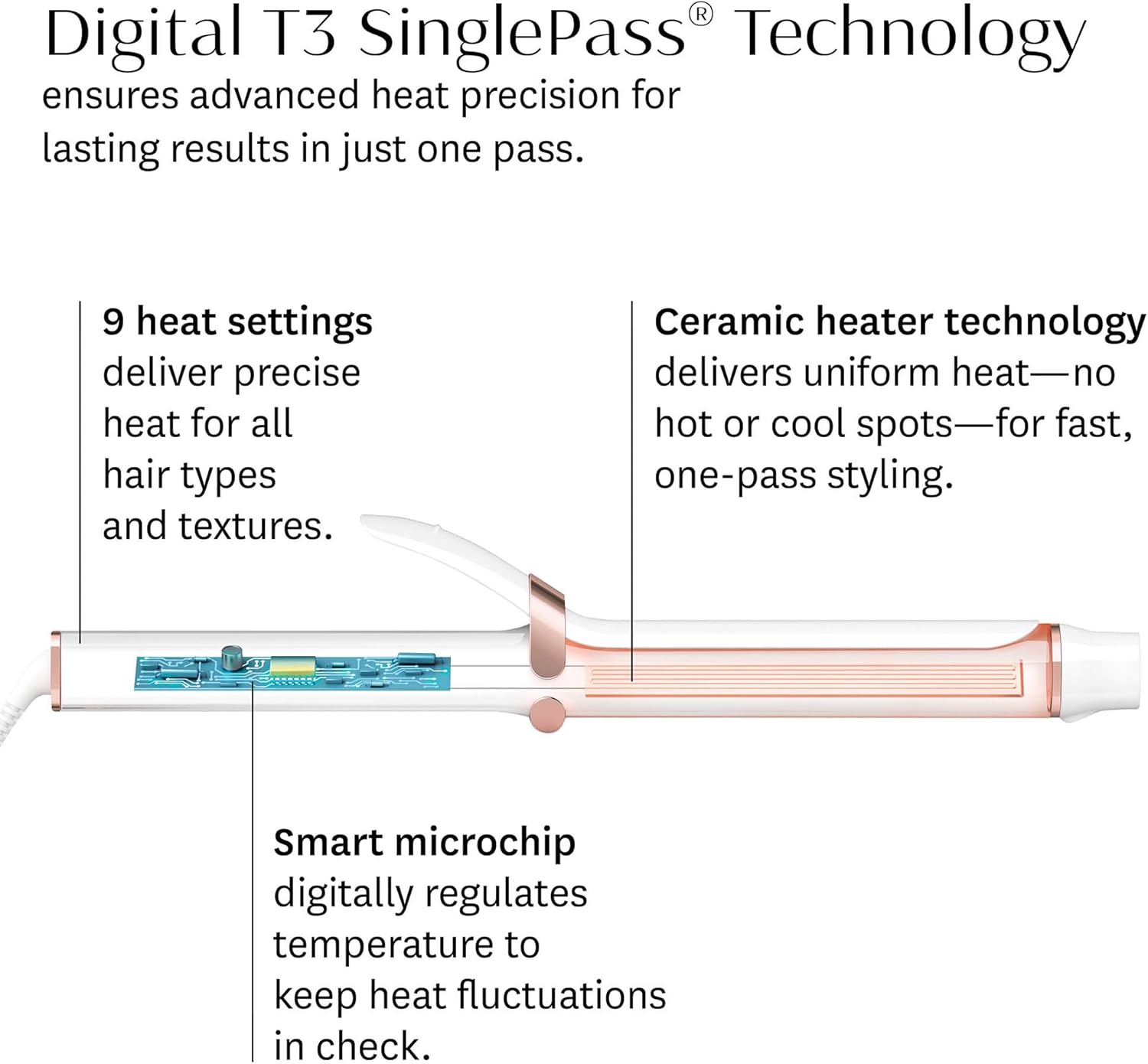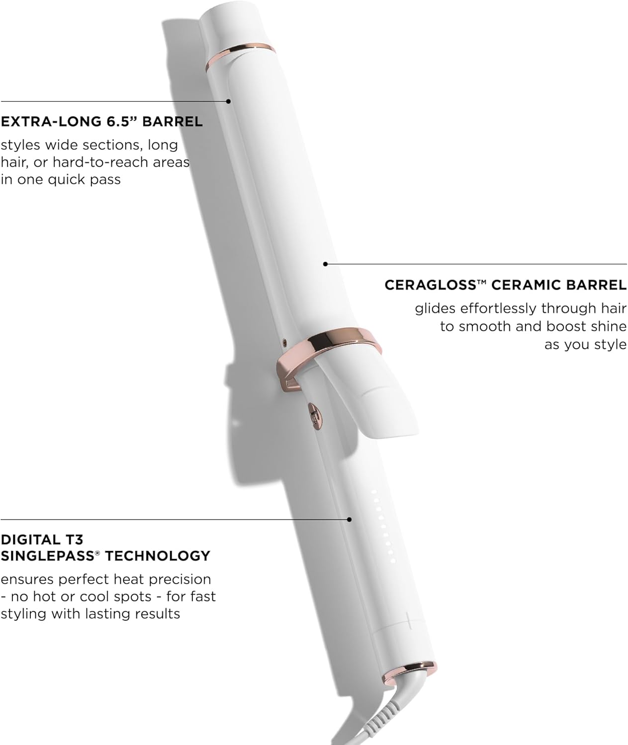 تي 3 مكواة تجعيد الشعر كيرل اكس طويلة للغاية مع 9 اعدادات للحرارة واسطوانة سيراميك لتصفيف سريع ونتائج دائمة لجميع انواع الشعر من سينغل باس