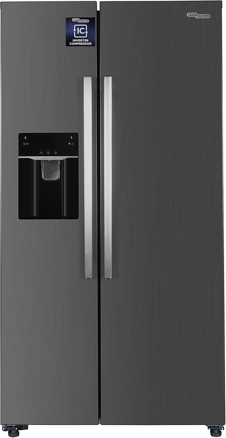 ثلاجة سوبر جنرال بحجم اجمالي 700 لتر مع موزع ثلج ومياه SGR870SBS SS، فضي، بدون تجميد مع صانع ثلج الباب، 900 عرض × 660 عمق × 1770 ارتفاع ملم