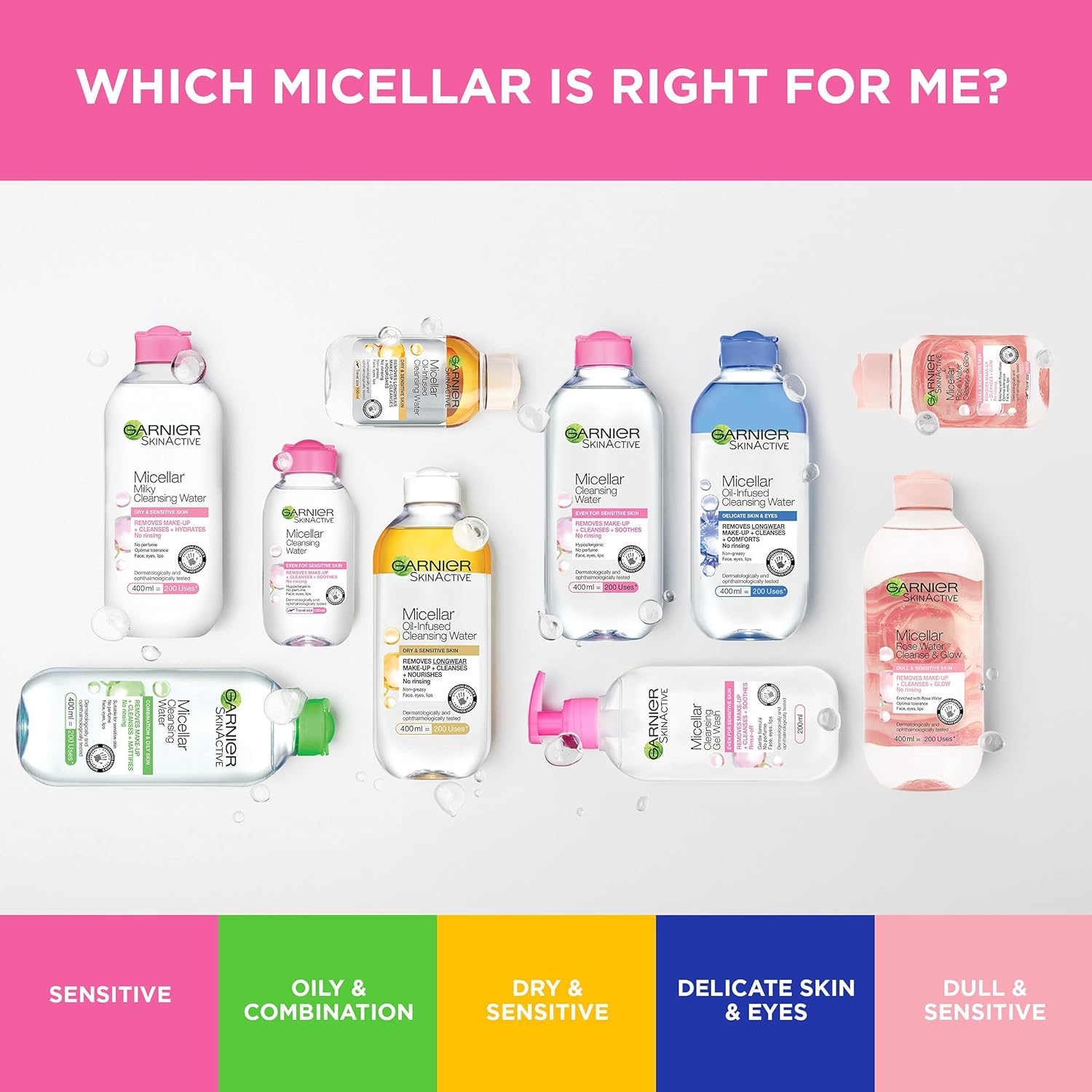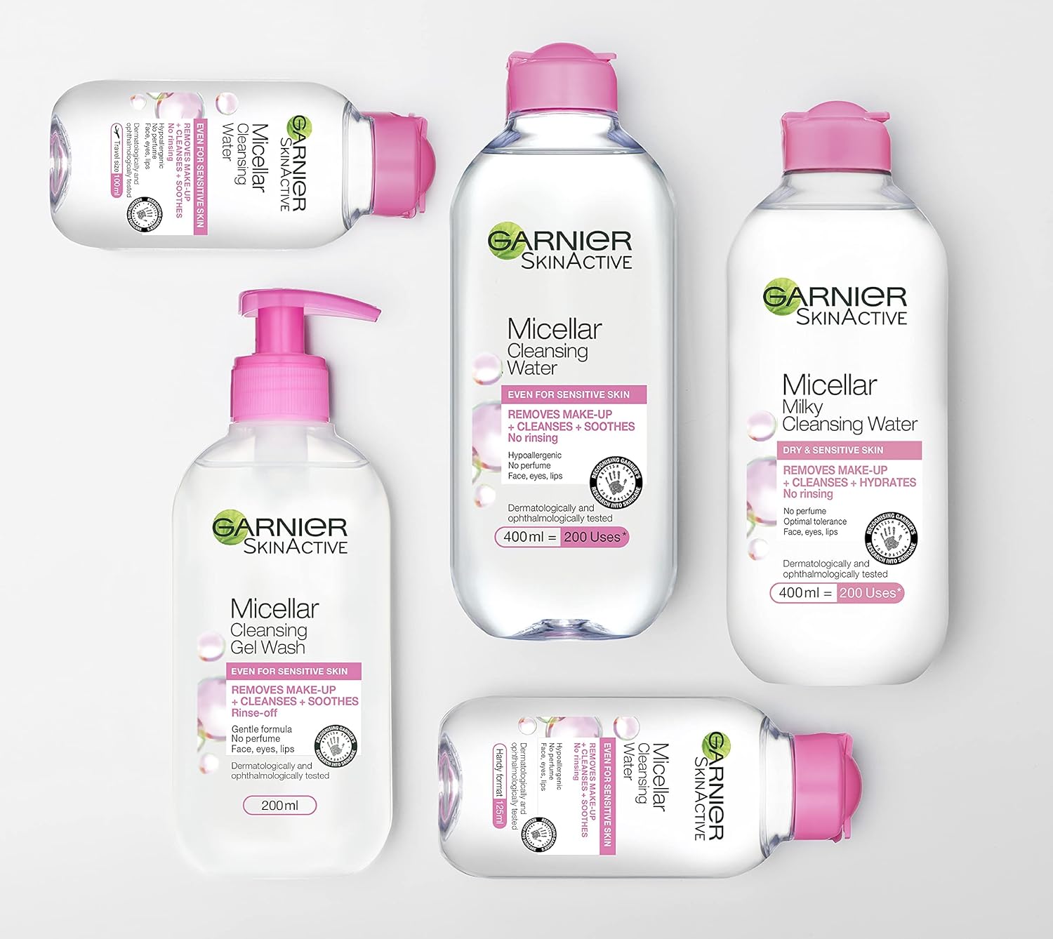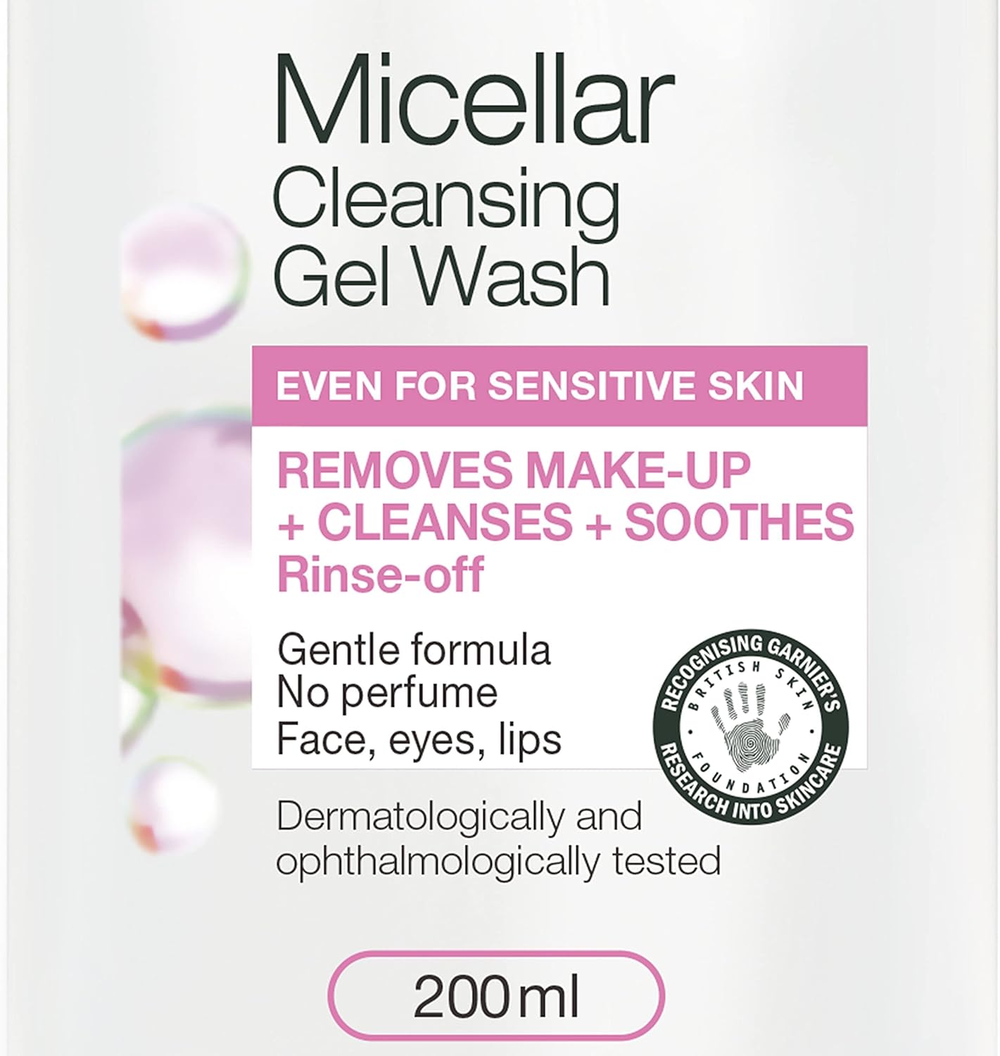 جارنيير غسول وجه جل من ميسيلار للبشرة الحساسة 200 مل، منظف لطيف للوجه ومزيل المكياج، معترف به من قبل كريم اساس البشرة البريطاني، تركيبة قابلة للشطف ولا تجف وخالية من العطور