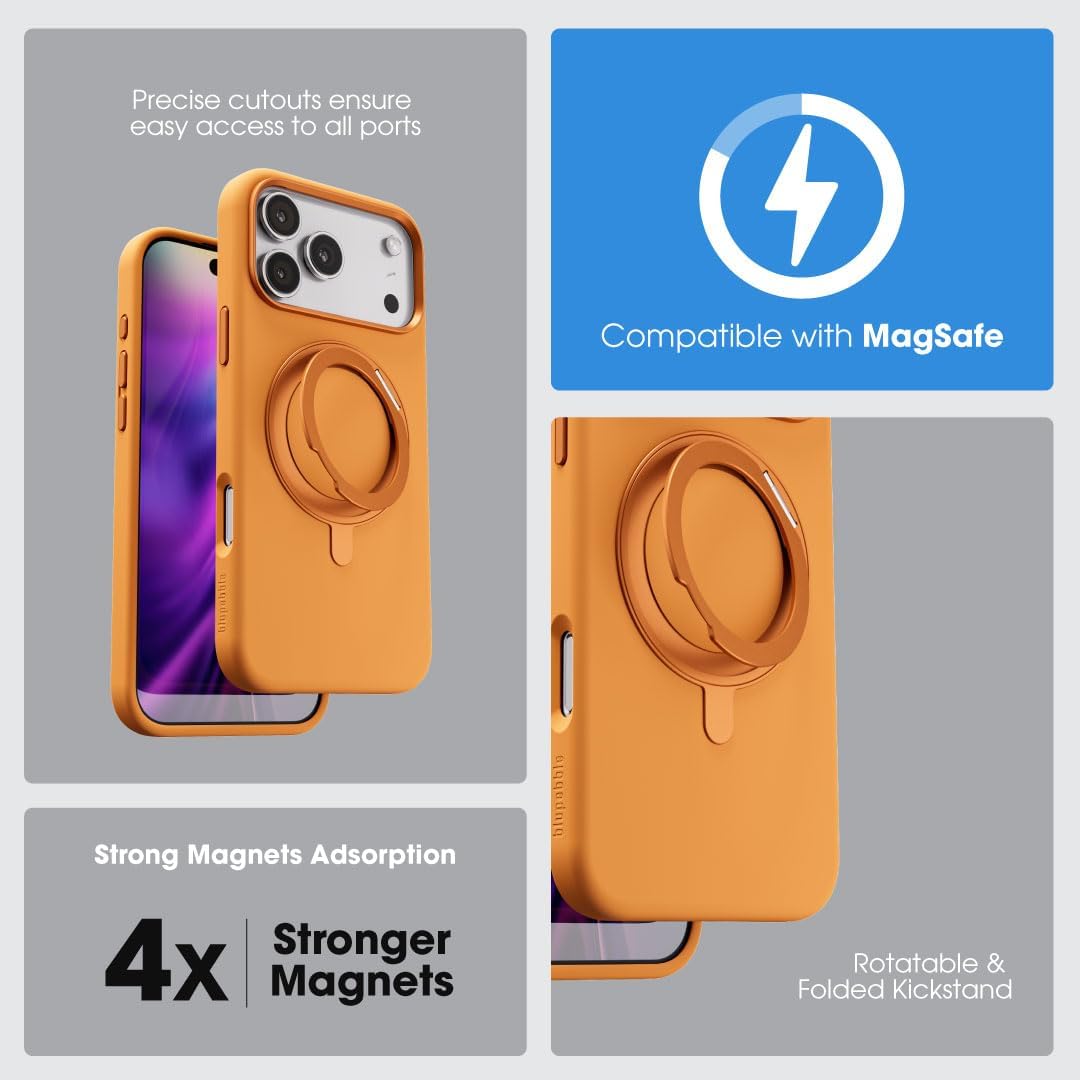 جراب رينج فليكس من بلوبيبل متوافق مع ايفون 17 برو ماكس – مسند قابل للطي والدوران 360 درجة، حماية ضد الصدمات، لمسة نهائية رفيعة غير لامعة، متوافق مع الشحن اللاسلكي المغناطيسي – برتقالي