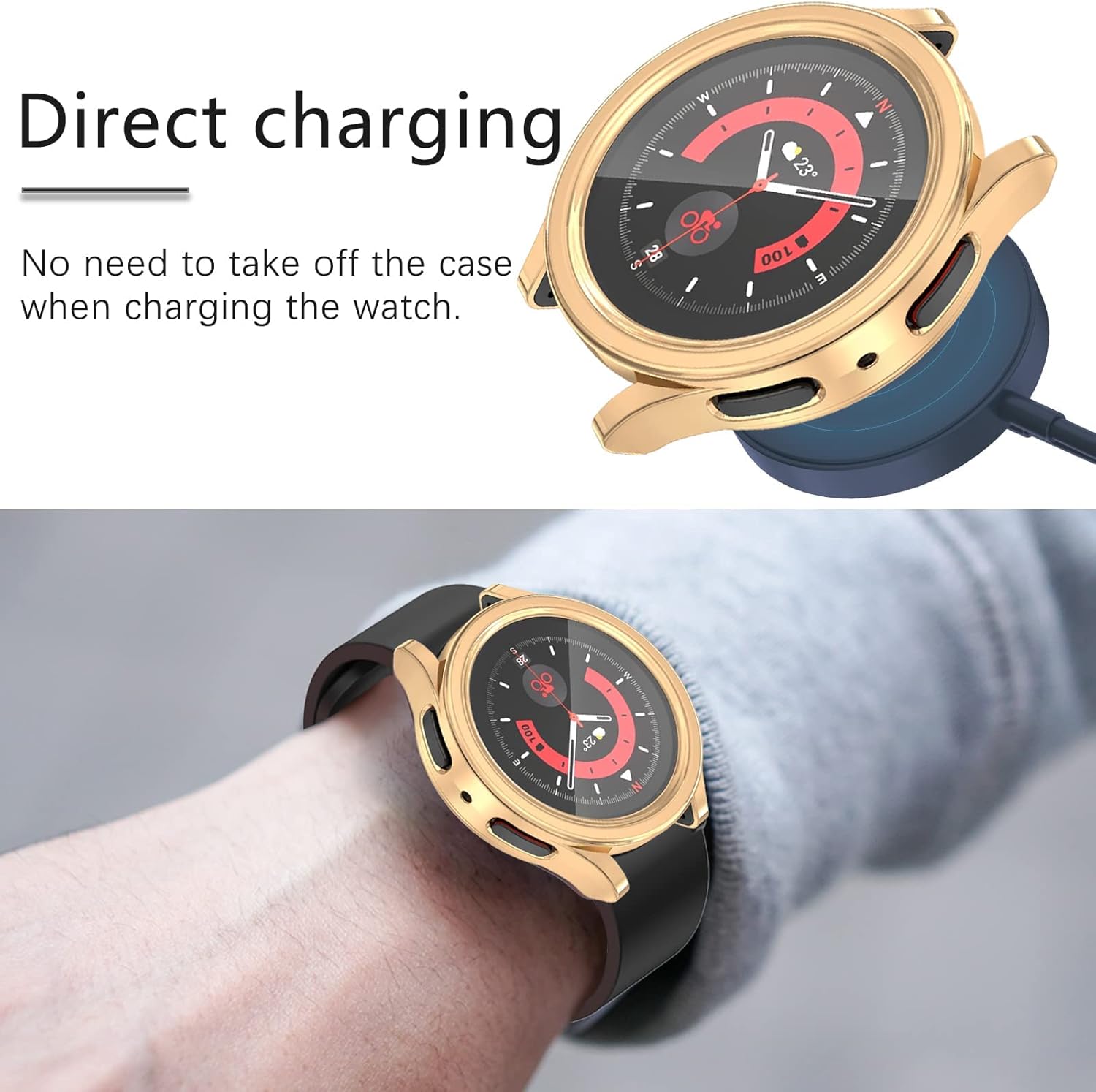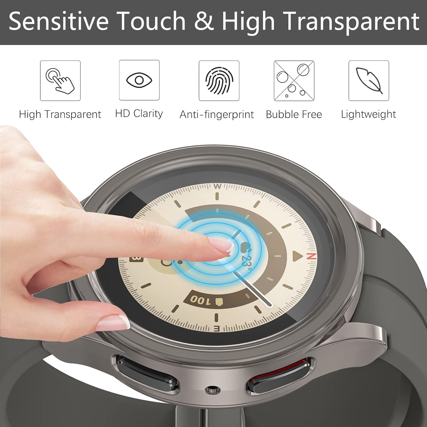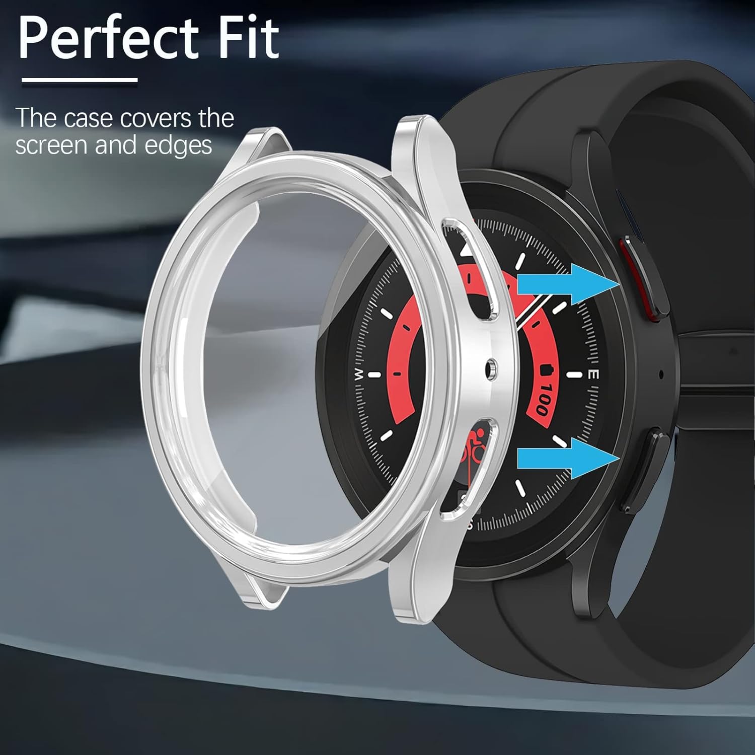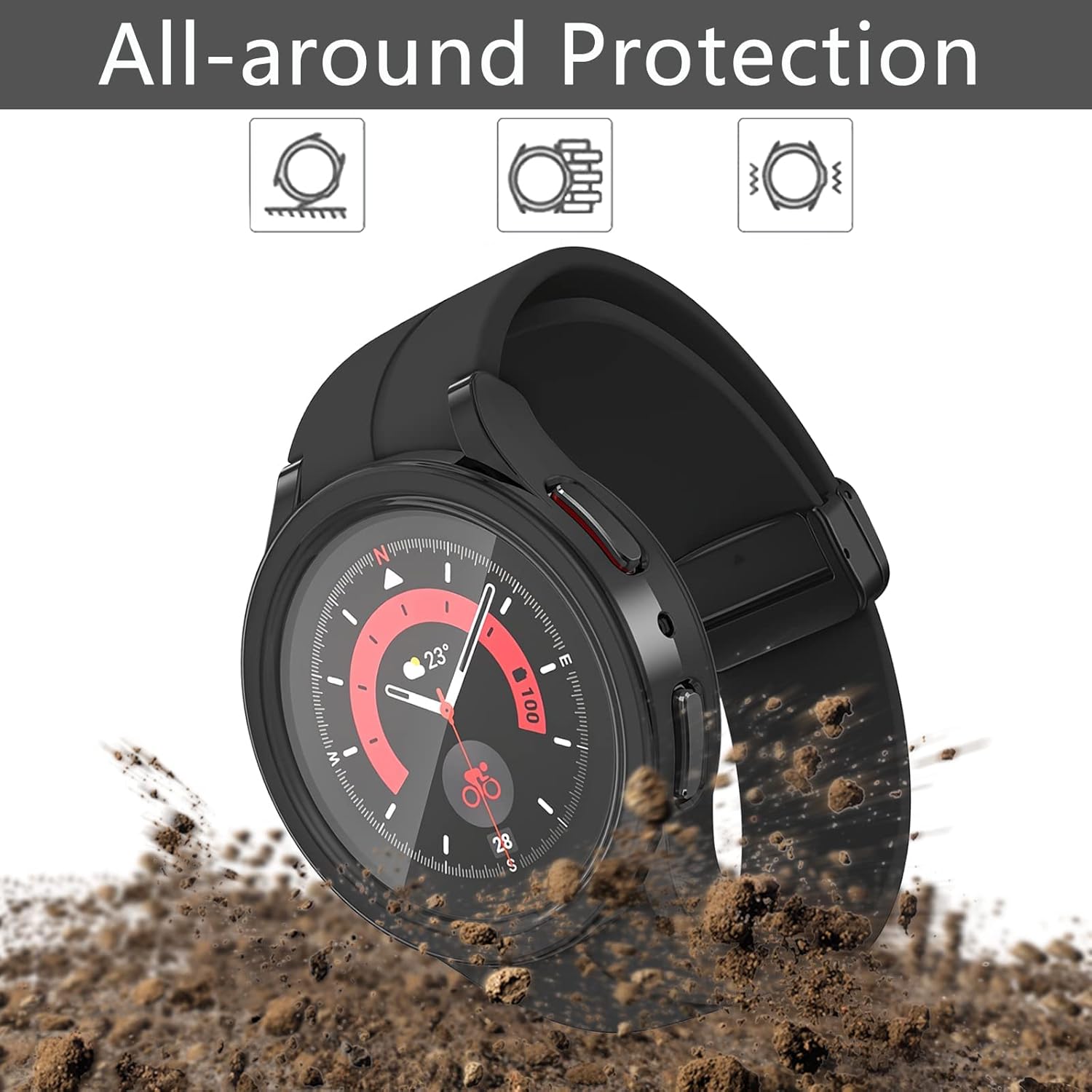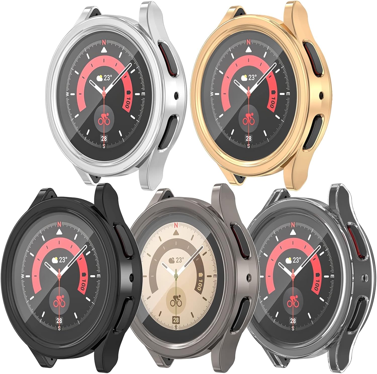 جراب ساعة متوافق مع ساعة سامسونج جالاكسي 5 برو، مناسب لملحقات ساعة جالكسي 5 برو، غطاء حماية كامل من البولي يوريثين الحراري الناعم مع شاشة HD مدمجة (5 قطع، 45 ملم)