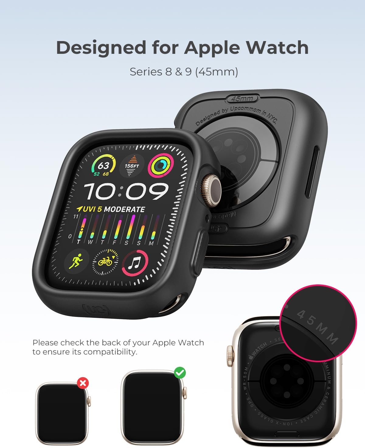 【التوافق】مصممة خصيصًا لساعة ابل سلسلة 9 و8 و7 مقاس 45 ملم، تضمن حافظة اب كومون فيت اكس ملاءمة محكمة، مما يوفر وصولاً كاملاً إلى جميع وظائف الجهاز.